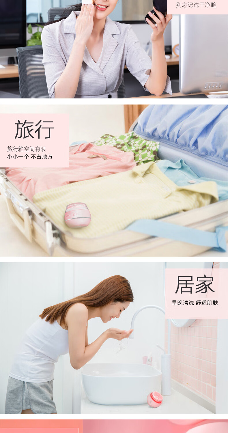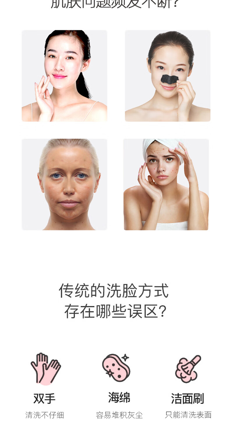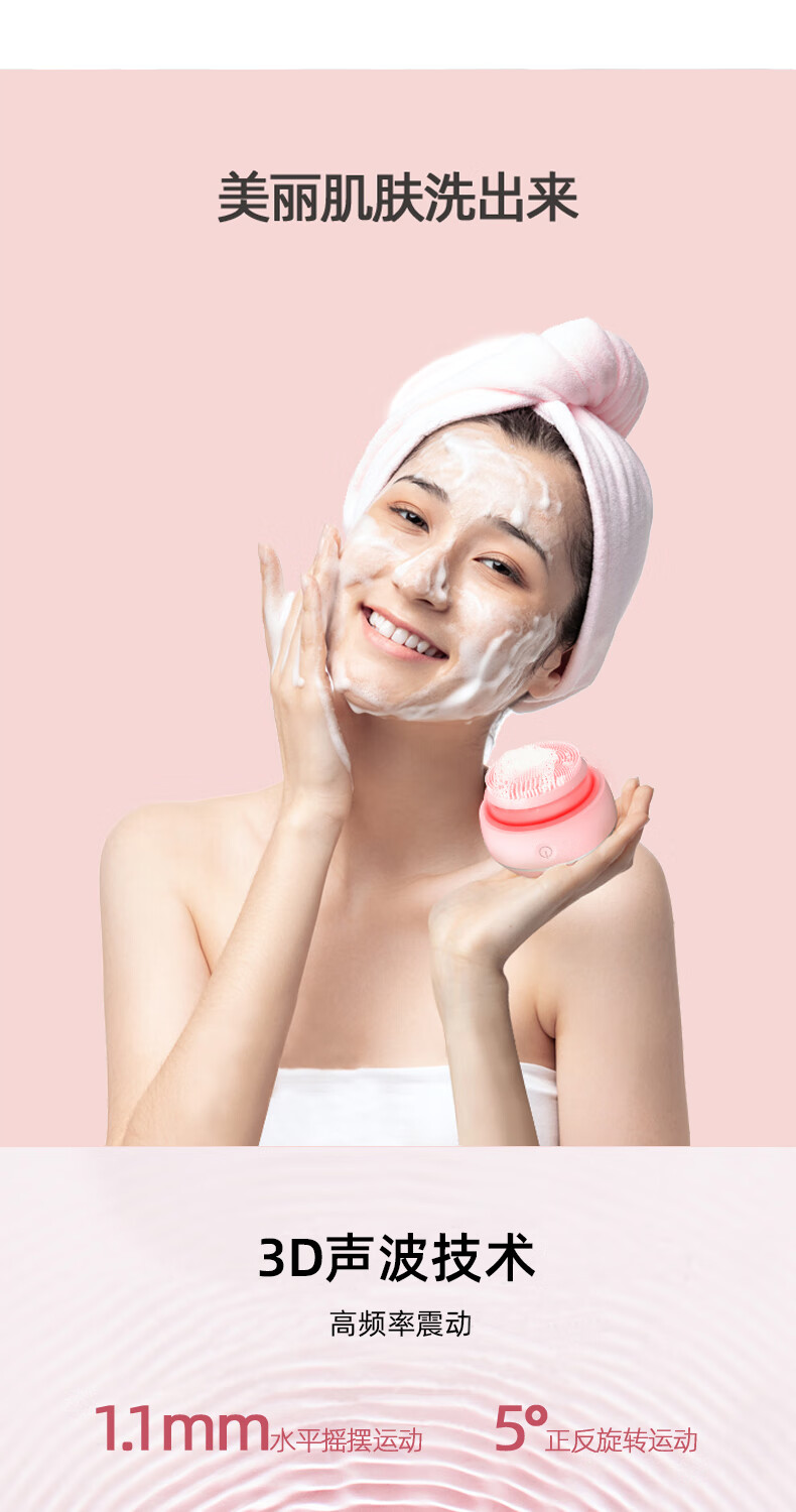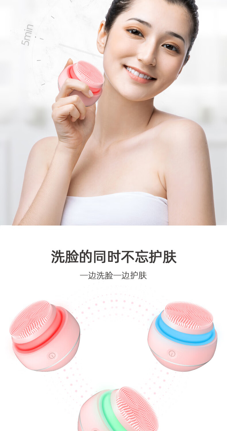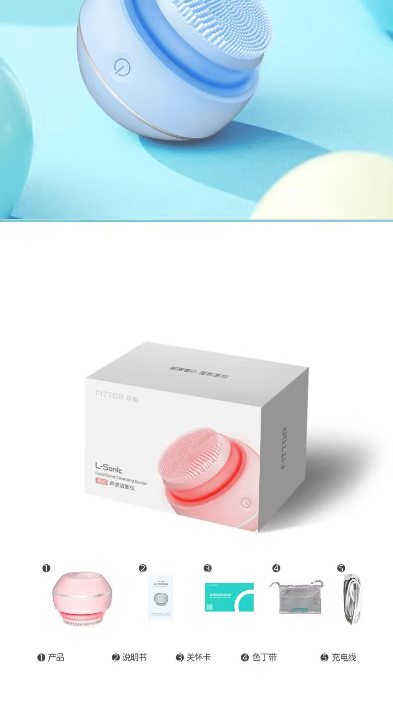 FITTOP LeQ Electric Face Wash Instrument Ultrasonic Electric Silicone Facial Cleanser Women's Facial Cleanser Deep Cleaning Men's Pore Cleansing Instrument Light Blue