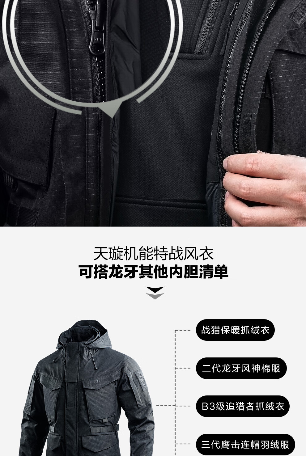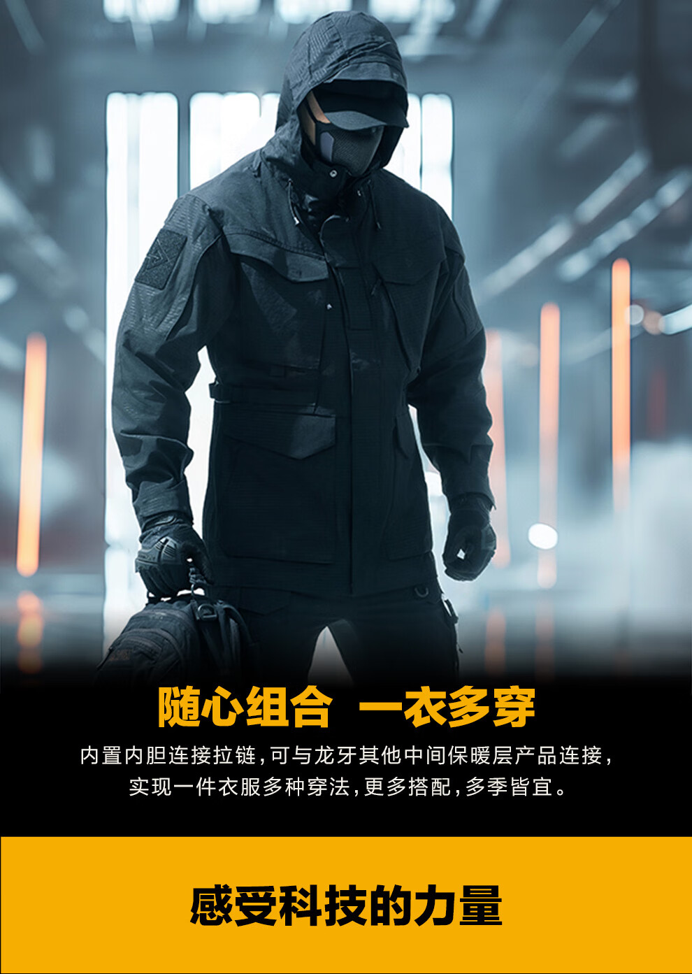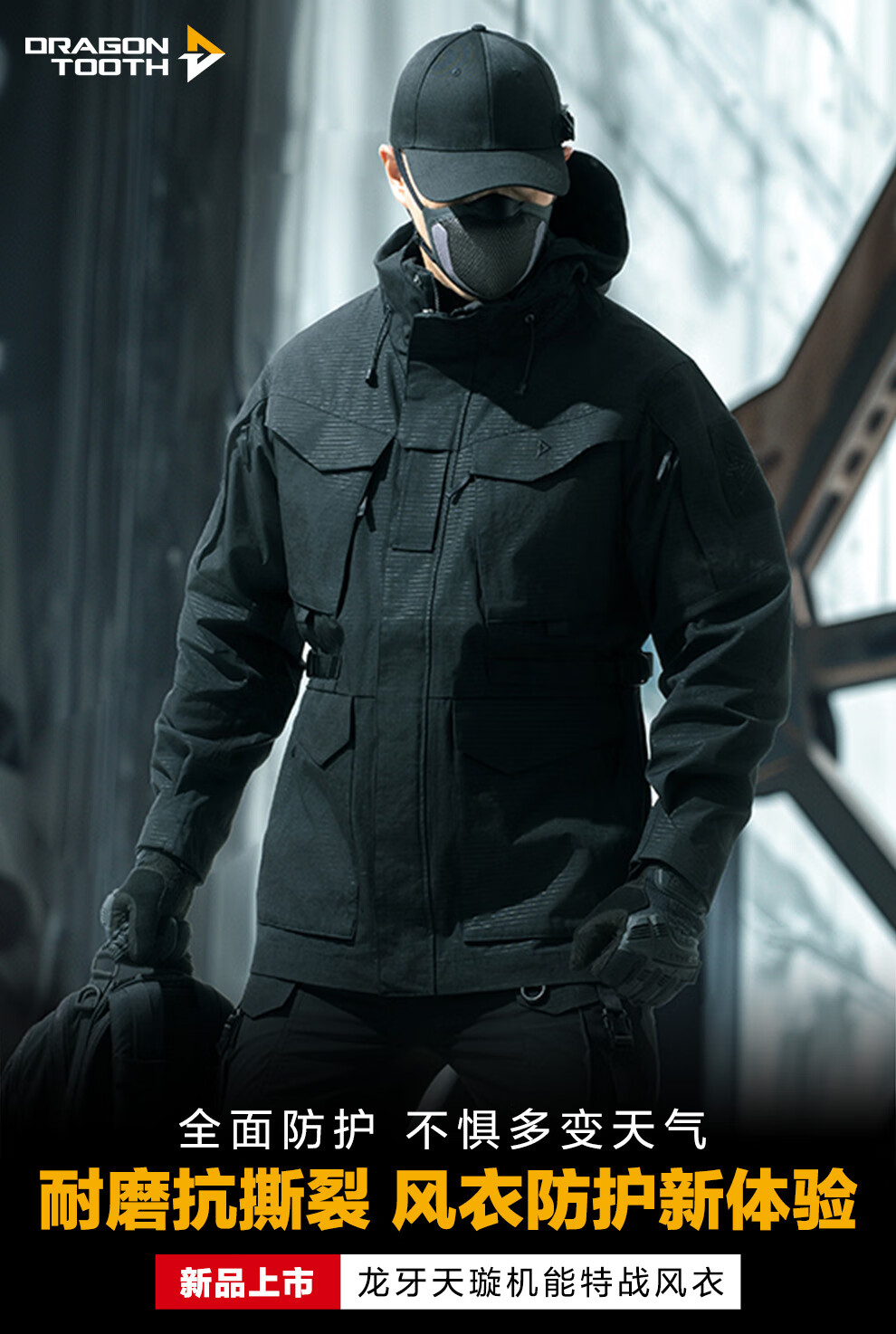 Зуб дракона Зуб дракона Tianxuan Функциональная ветровка для спецназа Мужская весенне-осенняя ветрозащитная куртка Городской свет На открытом воздухе Экстремальная ночь Черный XS