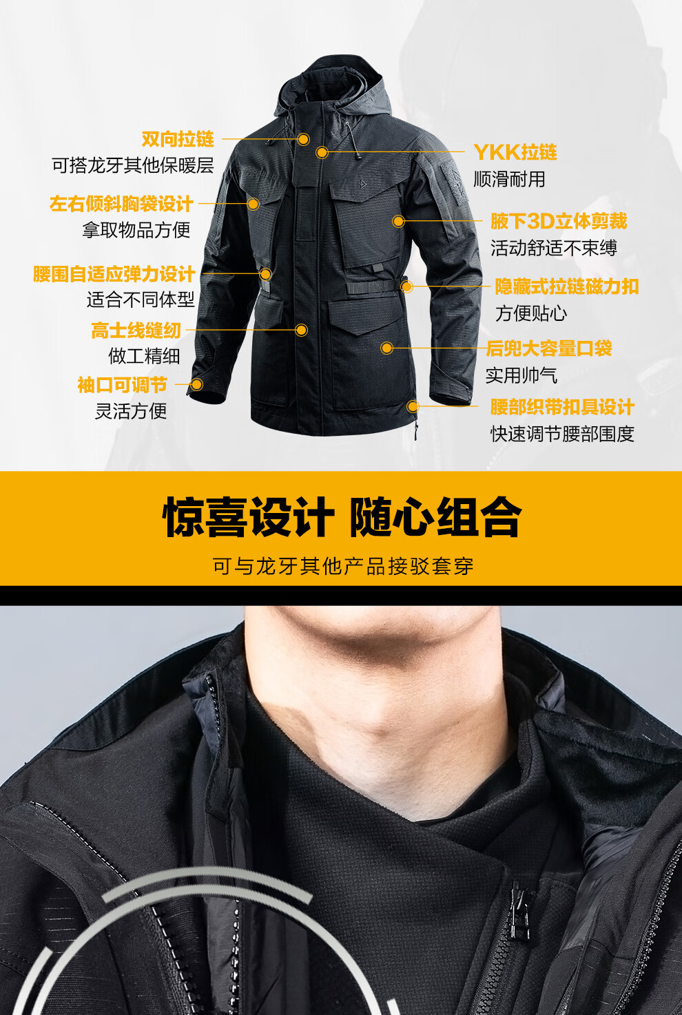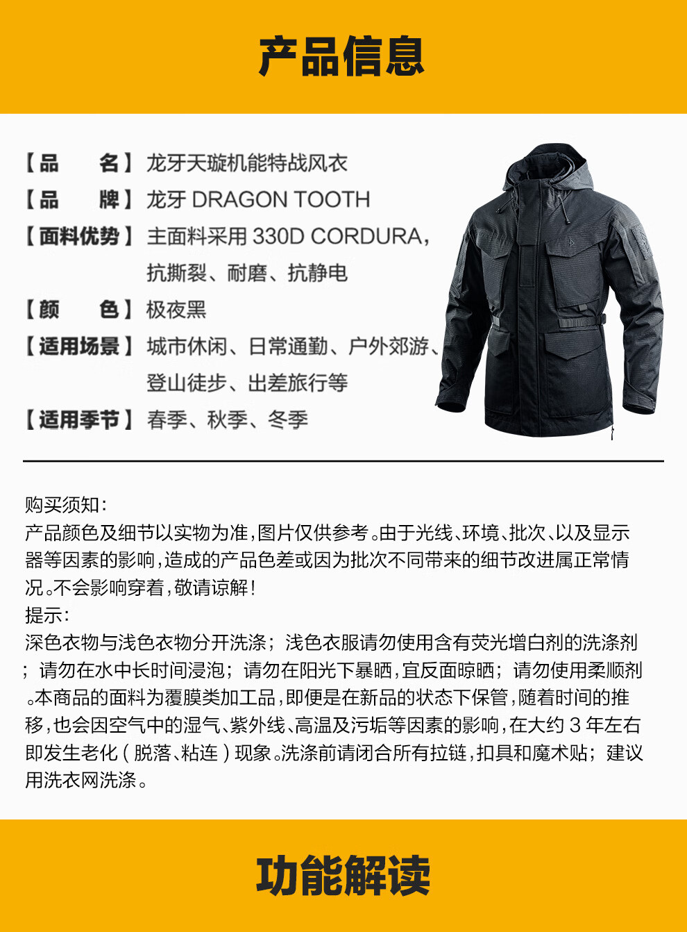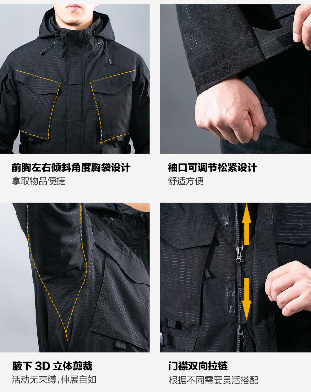 Зуб дракона Зуб дракона Tianxuan Функциональная ветровка для спецназа Мужская весенне-осенняя ветрозащитная куртка Городской свет На открытом воздухе Экстремальная ночь Черный XS