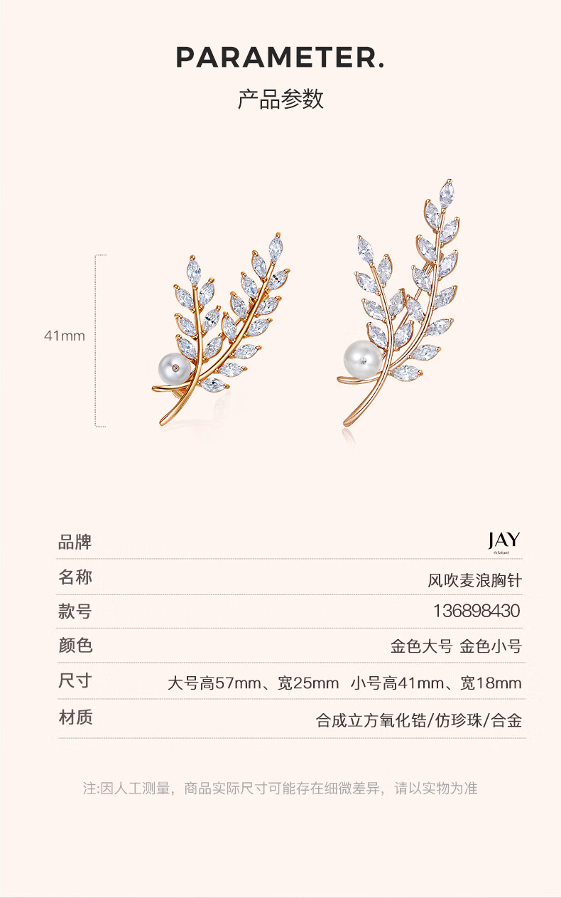 Jay Wheat Ear Brooch Women's Suit Coat Accessories Mother's Day Birthday Gift for Elder Mothers and Mother-in-Law Small Size (Beijing Warehouse/Nearest Shipment)