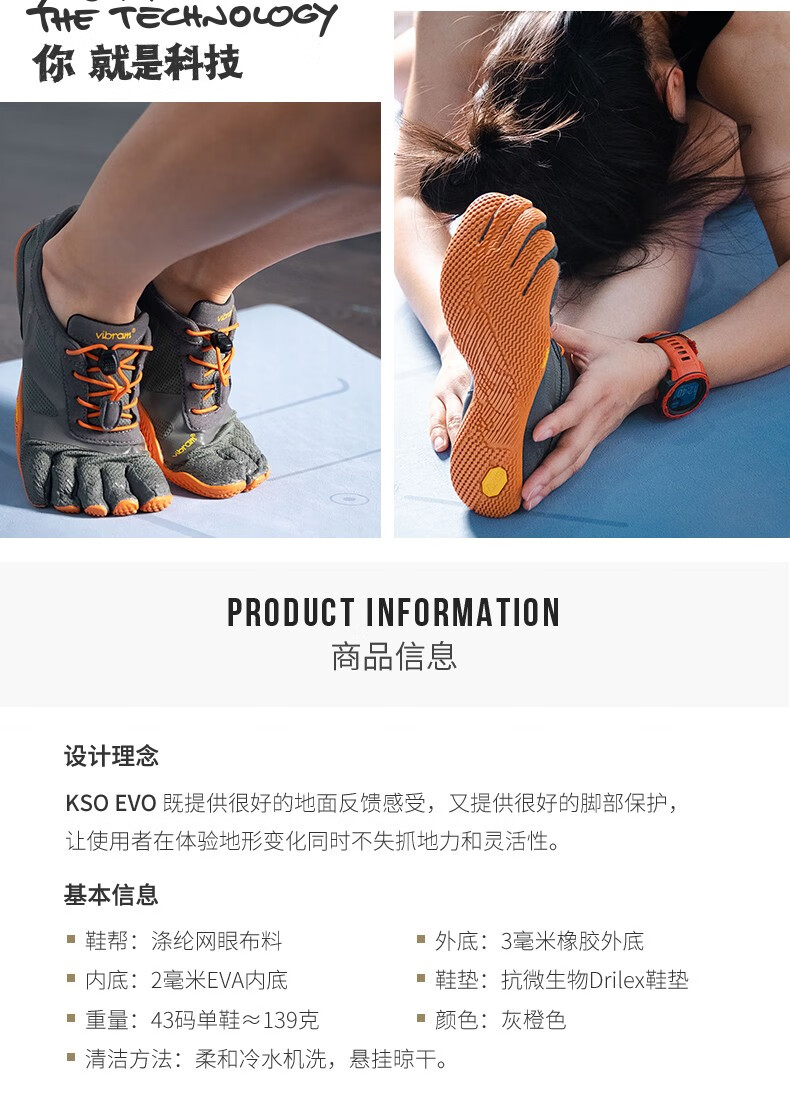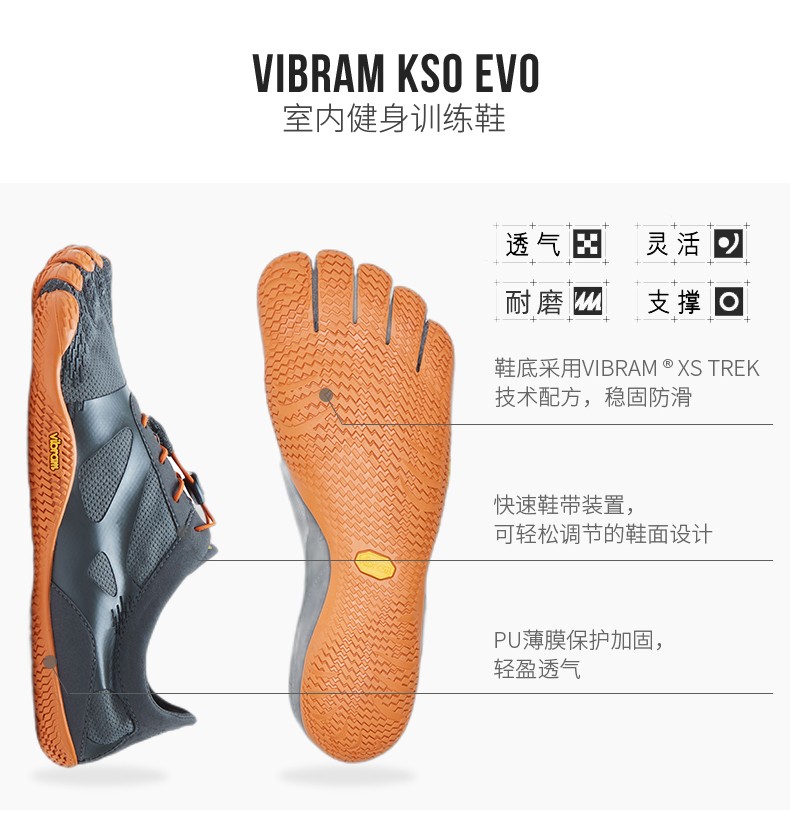 Vibram's new five-finger shoes, indoor and outdoor sports comprehensive fitness training shoes for couples, same style ksoevo gray orange (women's model) 36