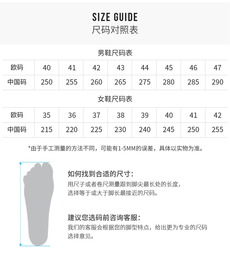 China (cm) 36 - 37 38 - 39 40 - 42 43 - 44 45 - 47