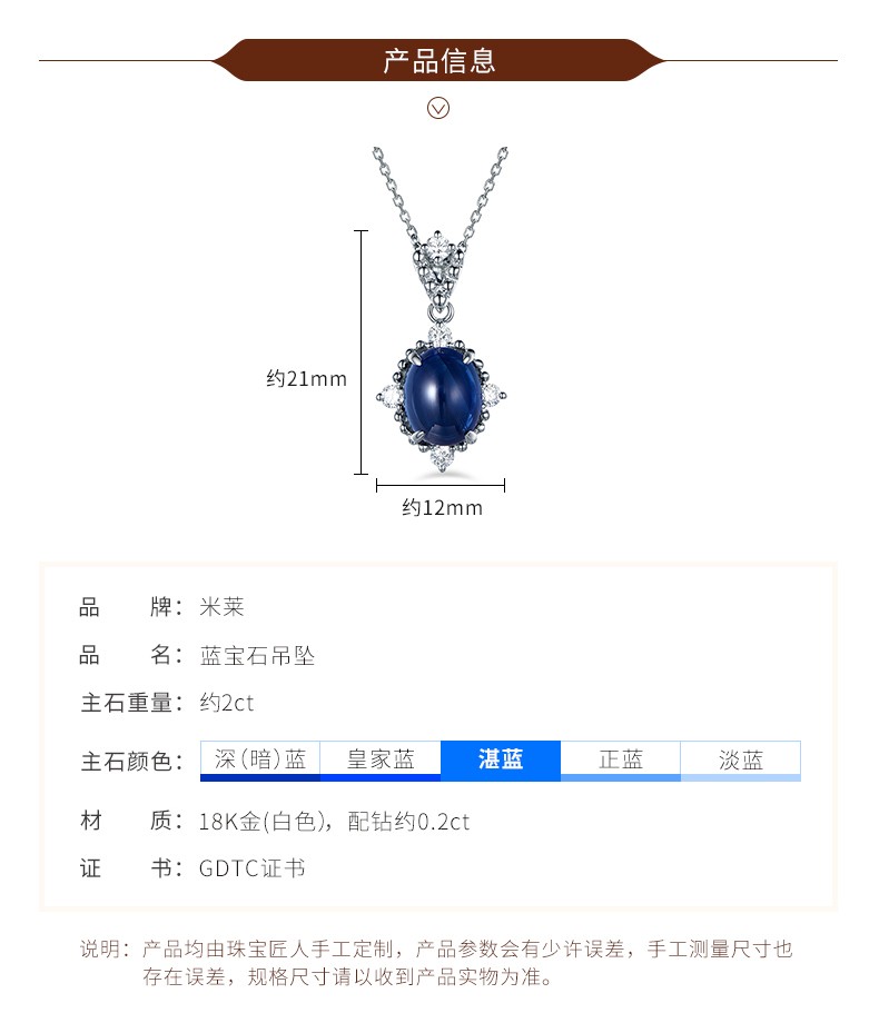 Millais Jewelry 2.0 carat plain sapphire pendant 18K gold inlaid with diamonds custom necklace women's colored gemstone jewelry accessories without chain chain can be additionally customized