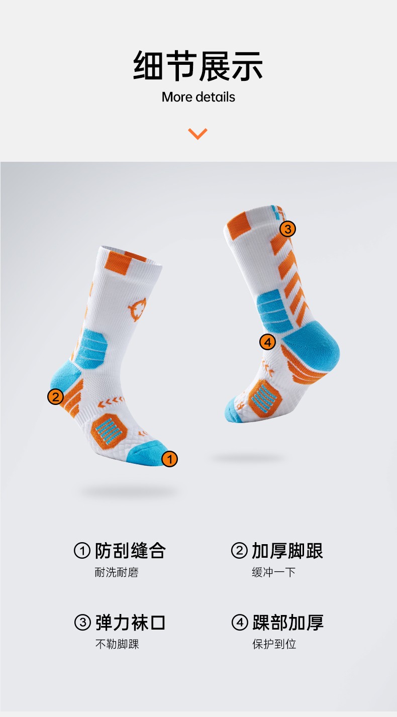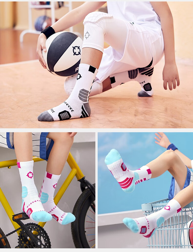 Children's Basketball Socks Professional Practical Sports Socks Youth Running Training Socks Towel Soled High-top Stockings Sunshine Orange 16CM