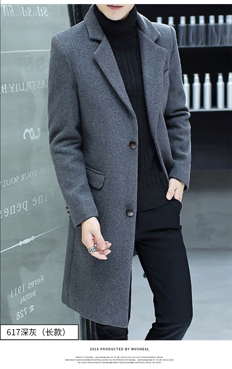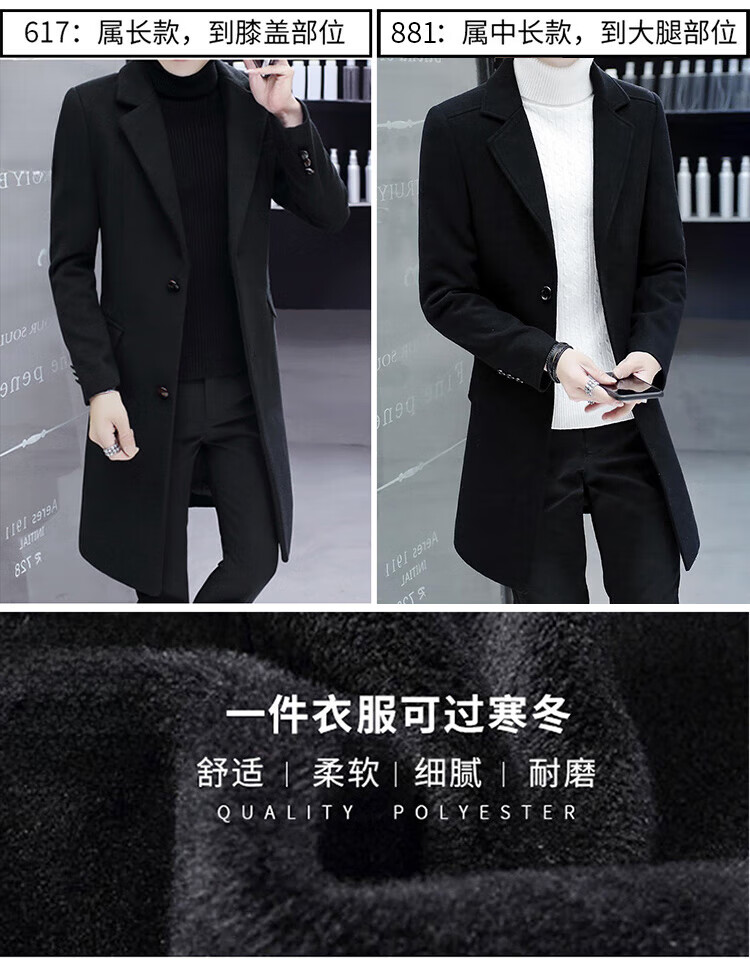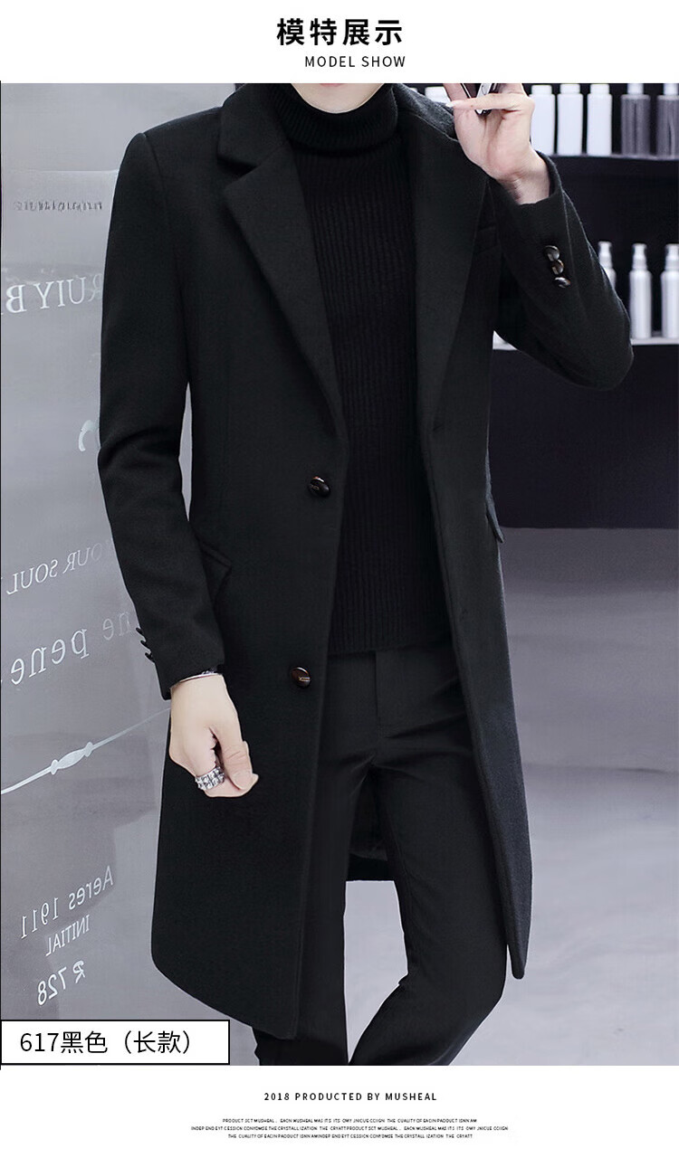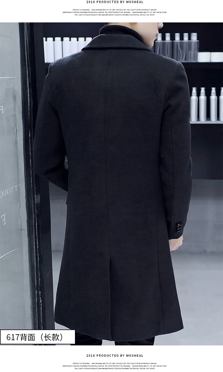 Woodpecker windbreaker men's winter mid-length plus velvet thickened woolen woolen coat long knee-length woolen coat 617 black long style cotton M 80-120Jin Jin equals 0.5 kg wear