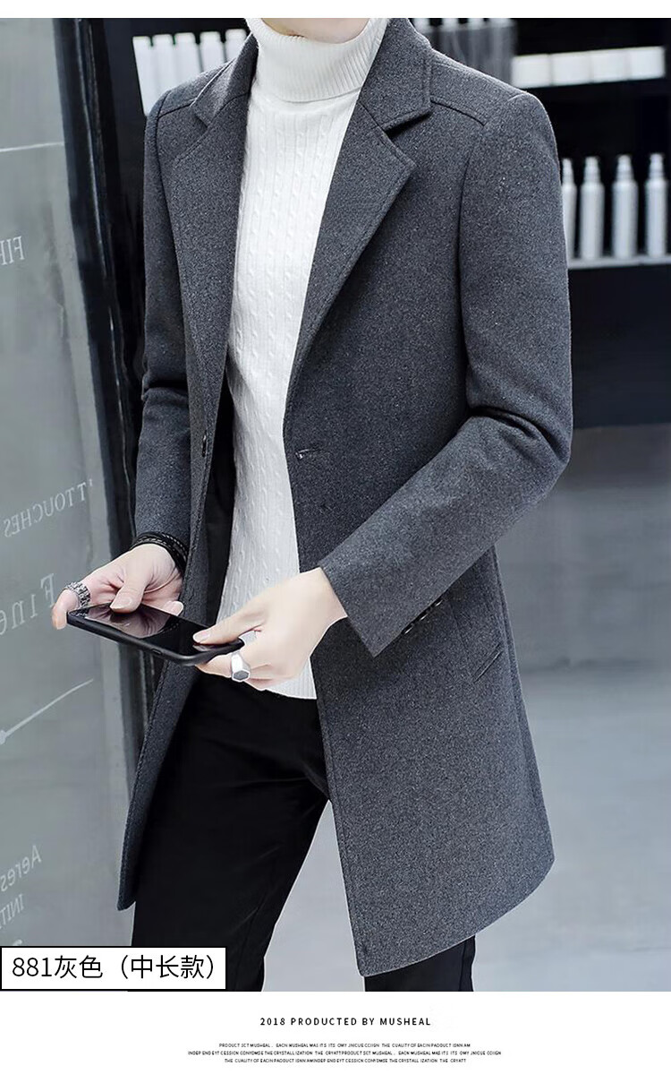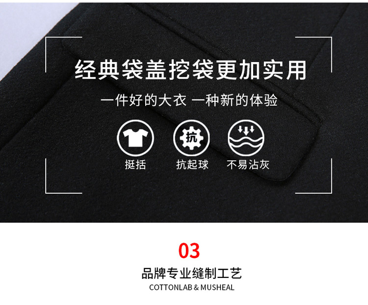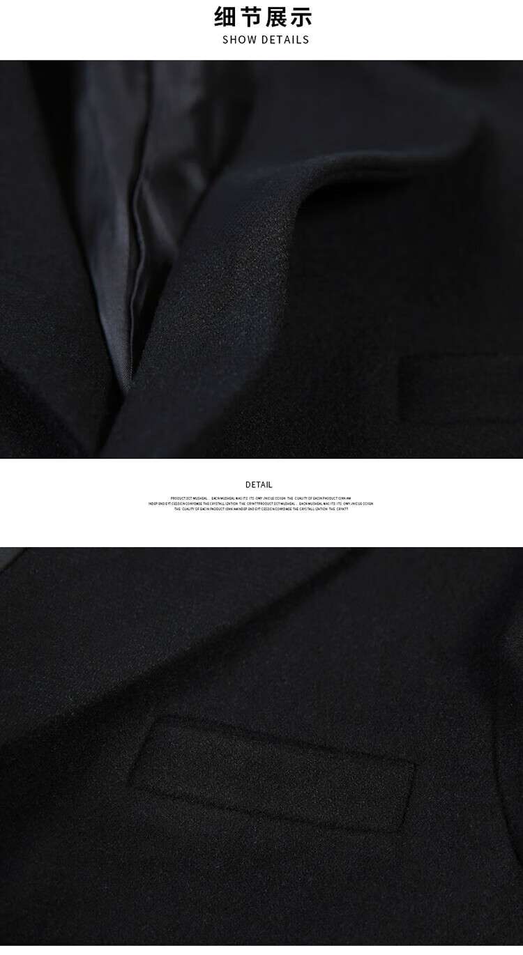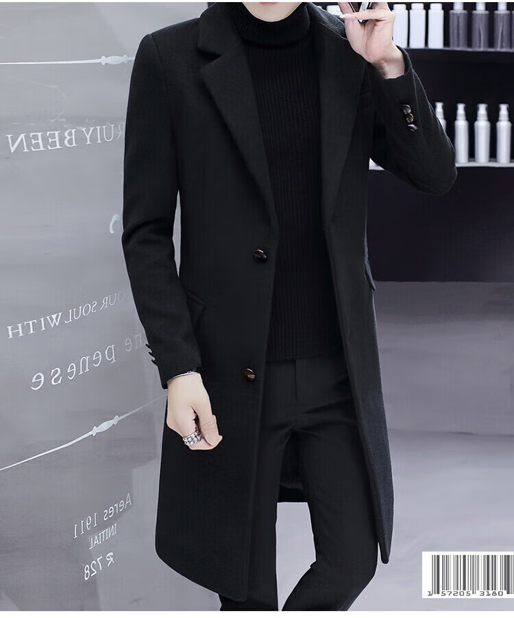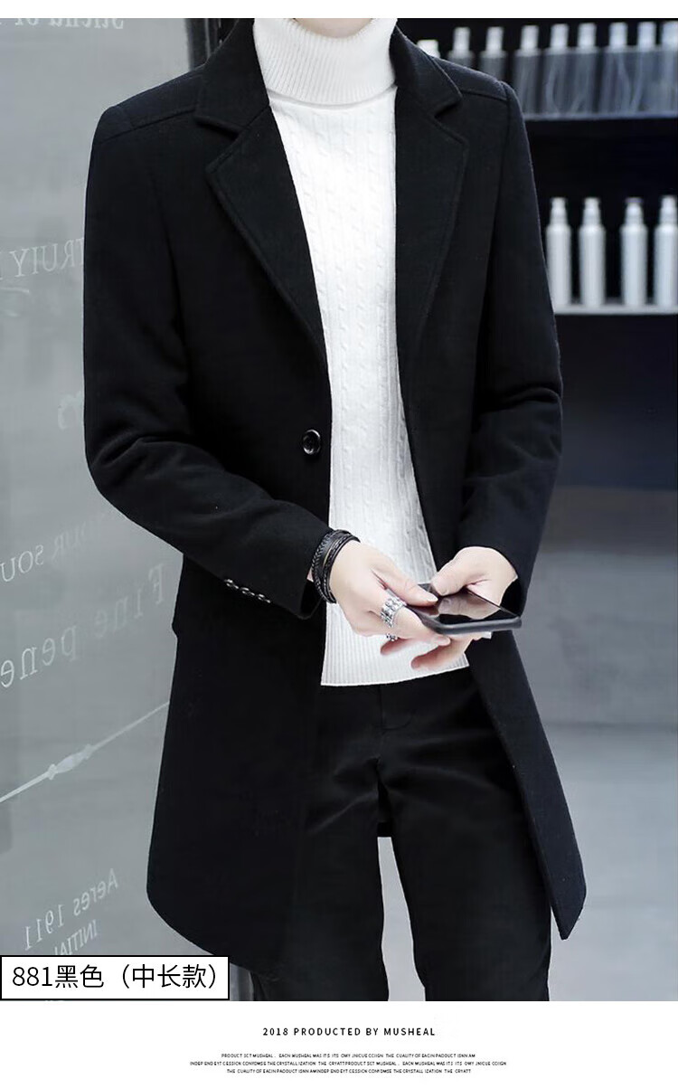 Woodpecker windbreaker men's winter mid-length plus velvet thickened woolen woolen coat long knee-length woolen coat 617 black long style cotton M 80-120Jin Jin equals 0.5 kg wear