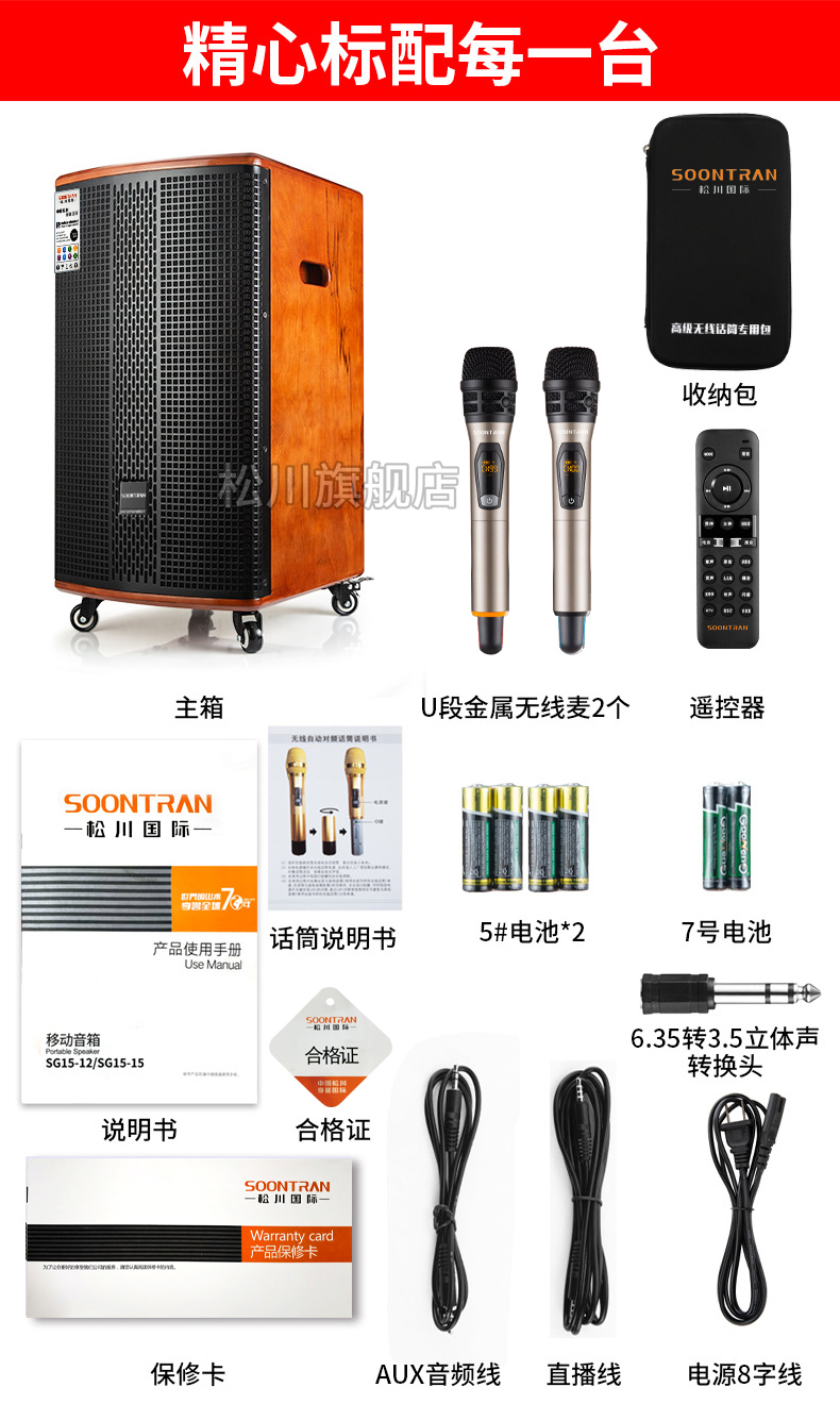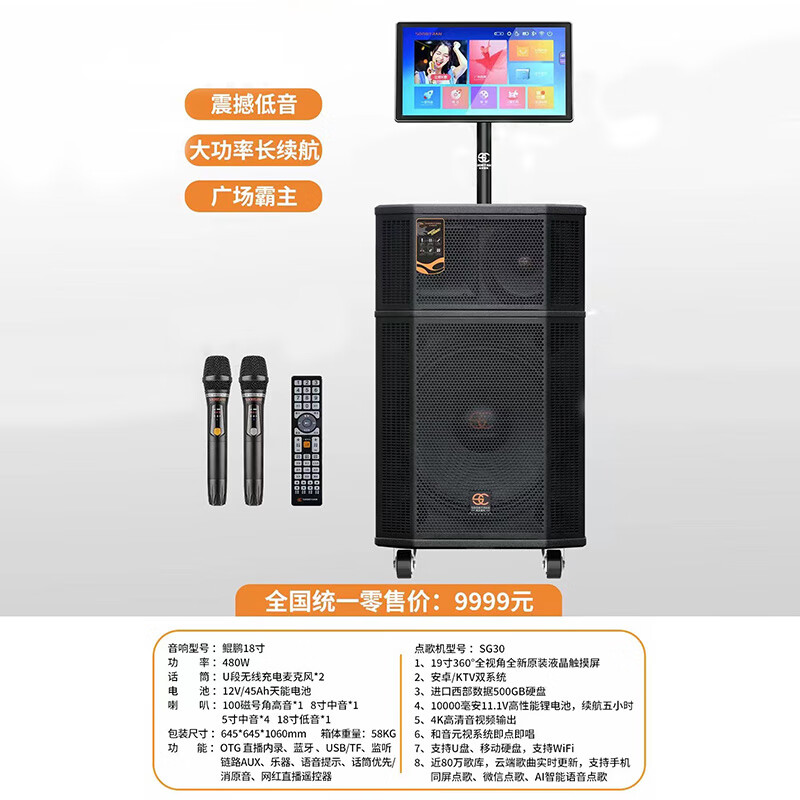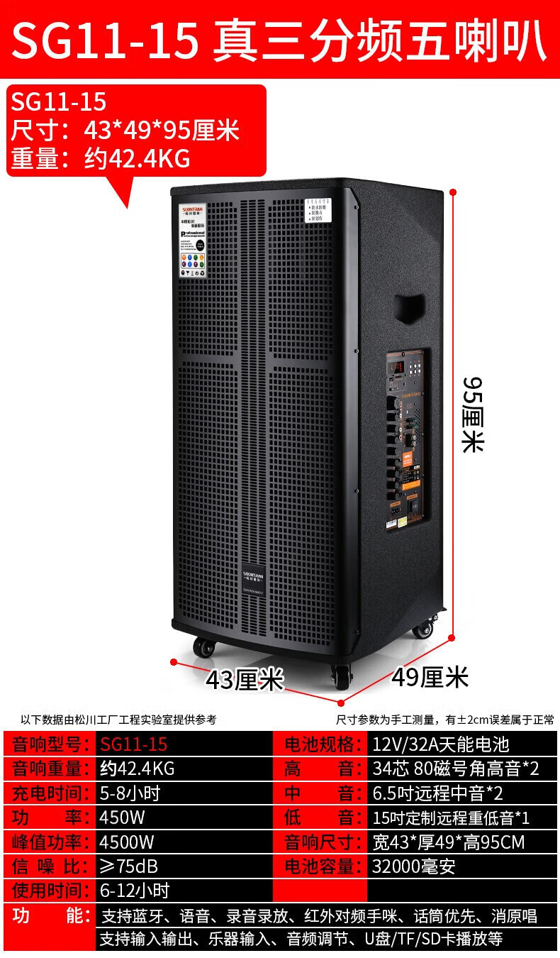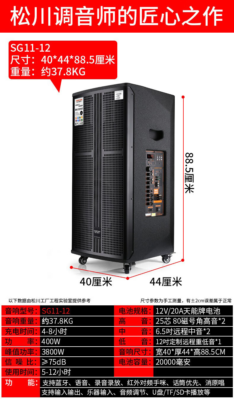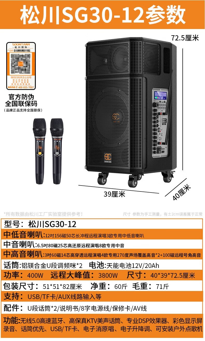 Songchuan International SG30-10 outdoor high-power performance karaoke singing KTV speaker set mobile audio singing microphone SG11-12 (12-inch remote speaker + outdoor karaoke machine)