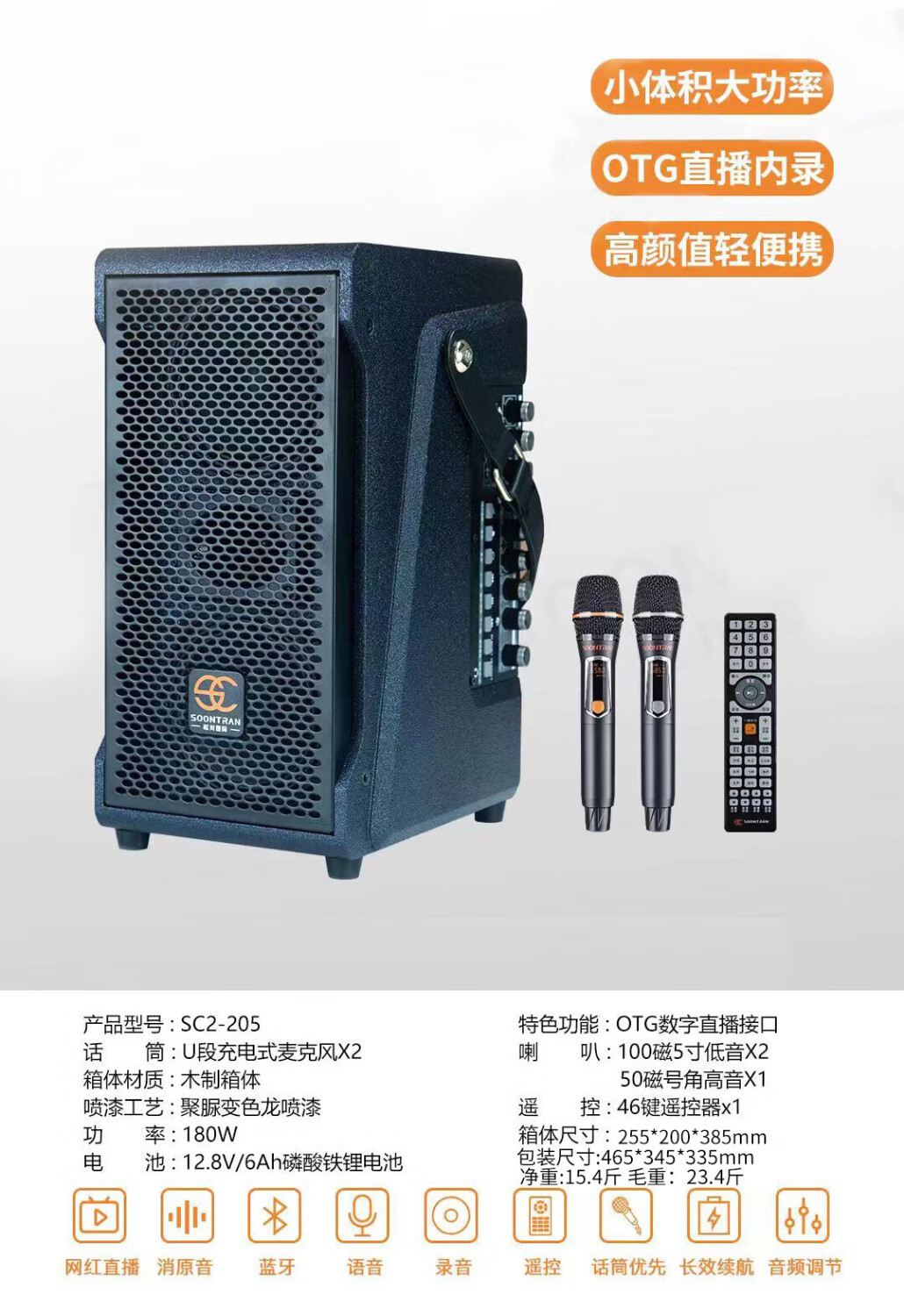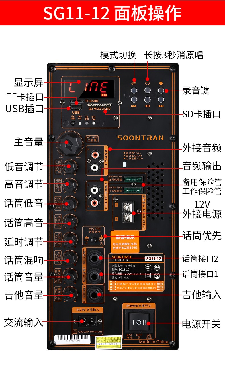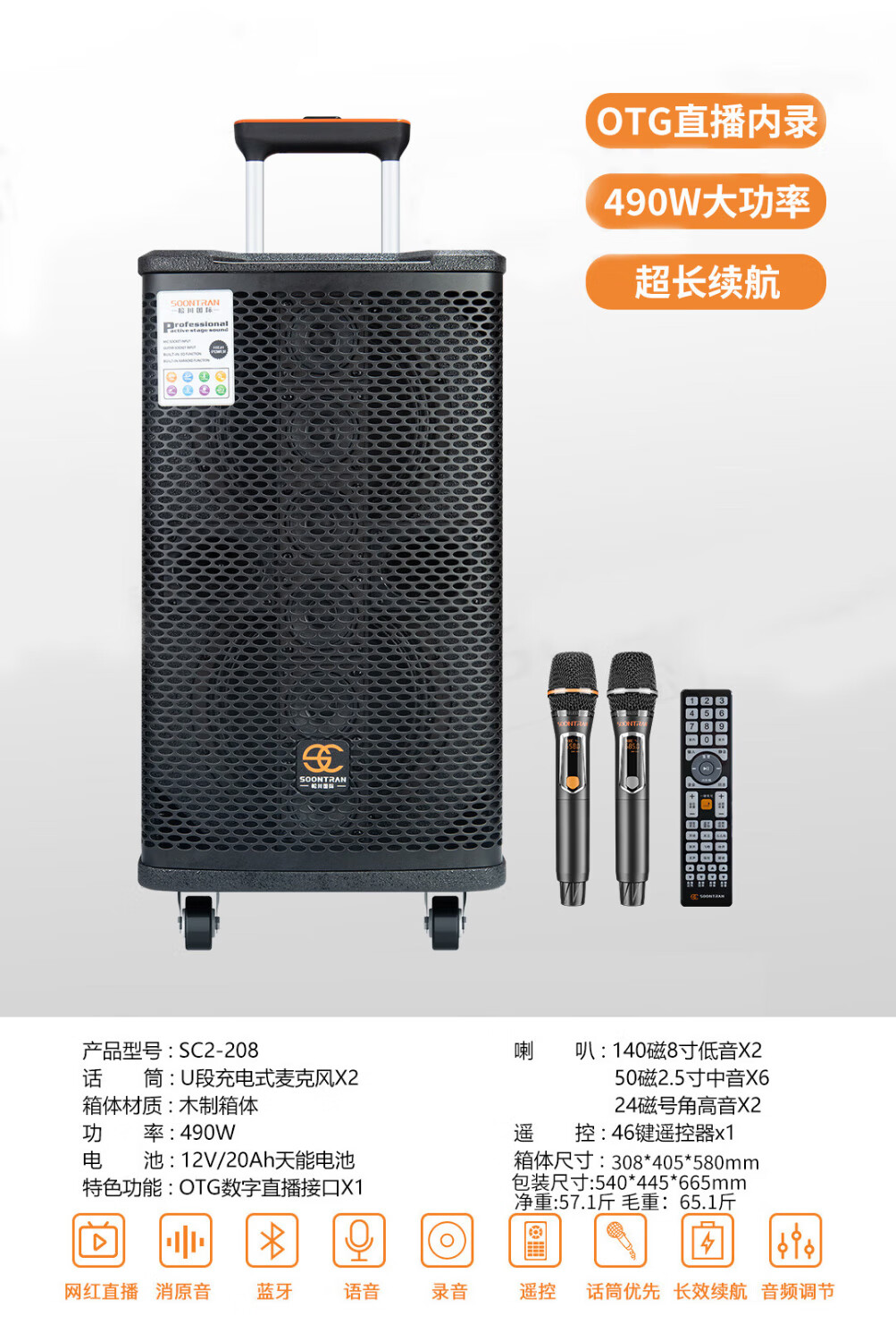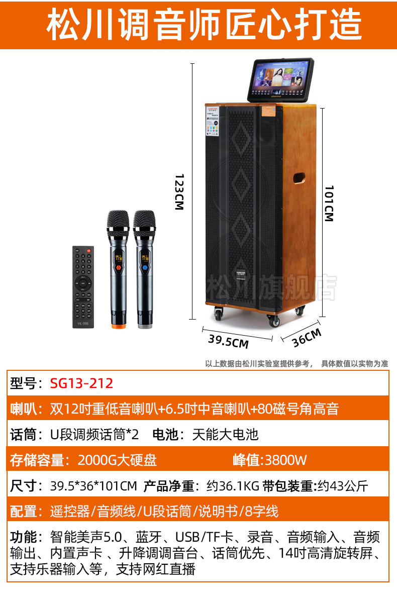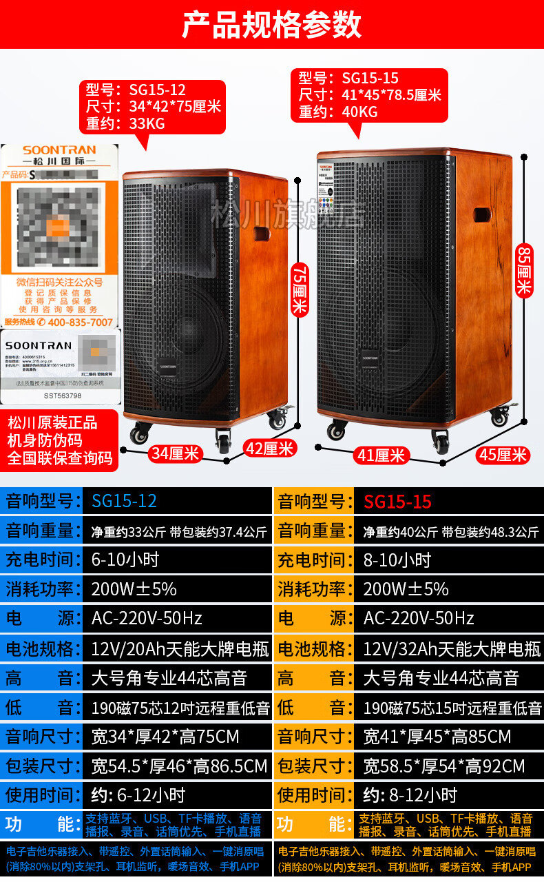 Songchuan International SG30-10 outdoor high-power performance karaoke singing KTV speaker set mobile audio singing microphone SG11-12 (12-inch remote speaker + outdoor karaoke machine)