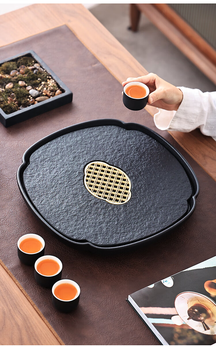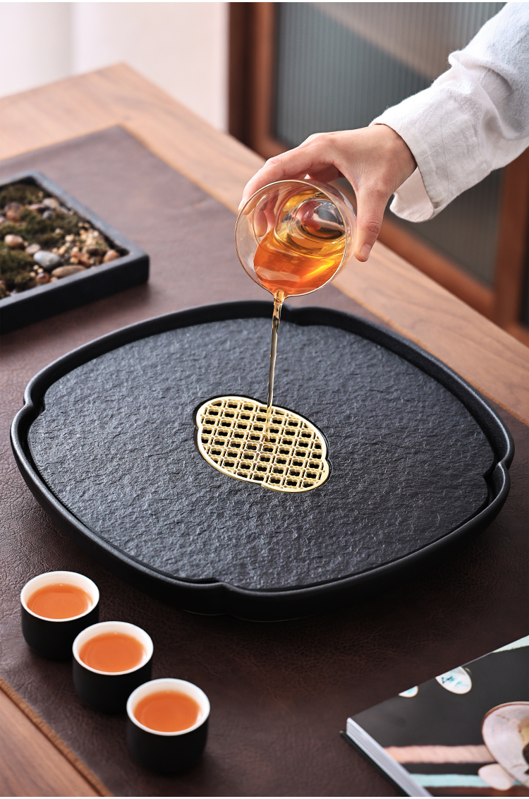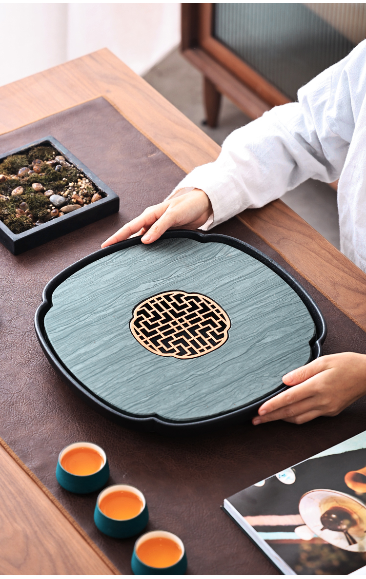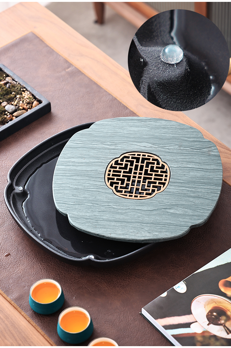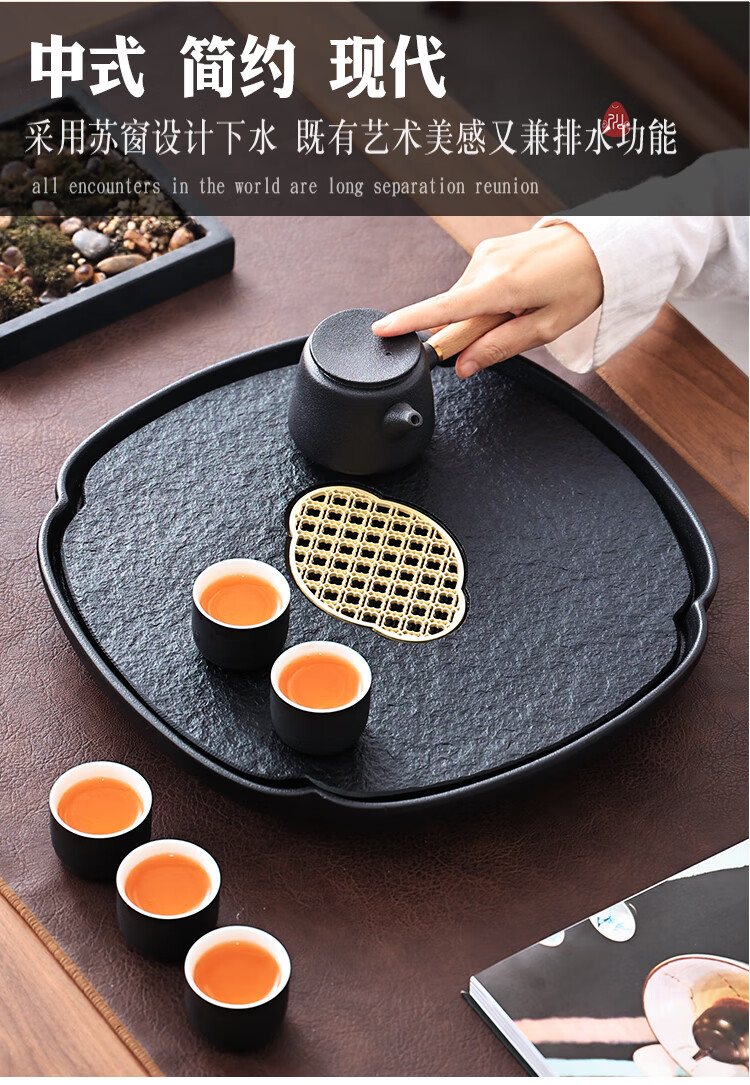 Tao Shangyin ceramic natural stone tea table storage and drainage dual-purpose modern simple home office small tea tray Kung Fu tea set lotus wood grain stone book window red
