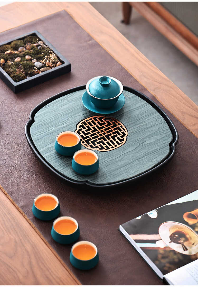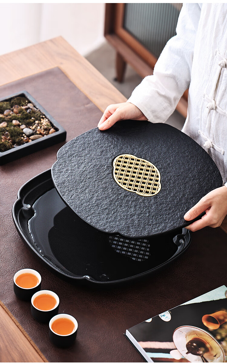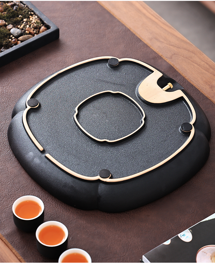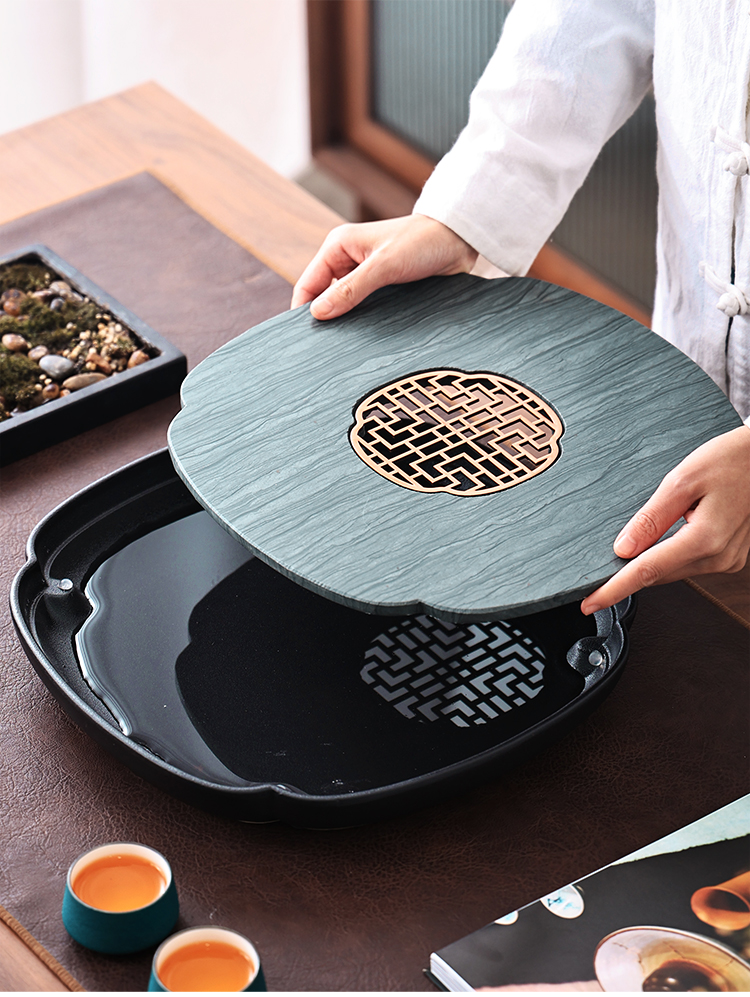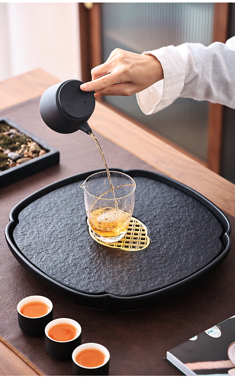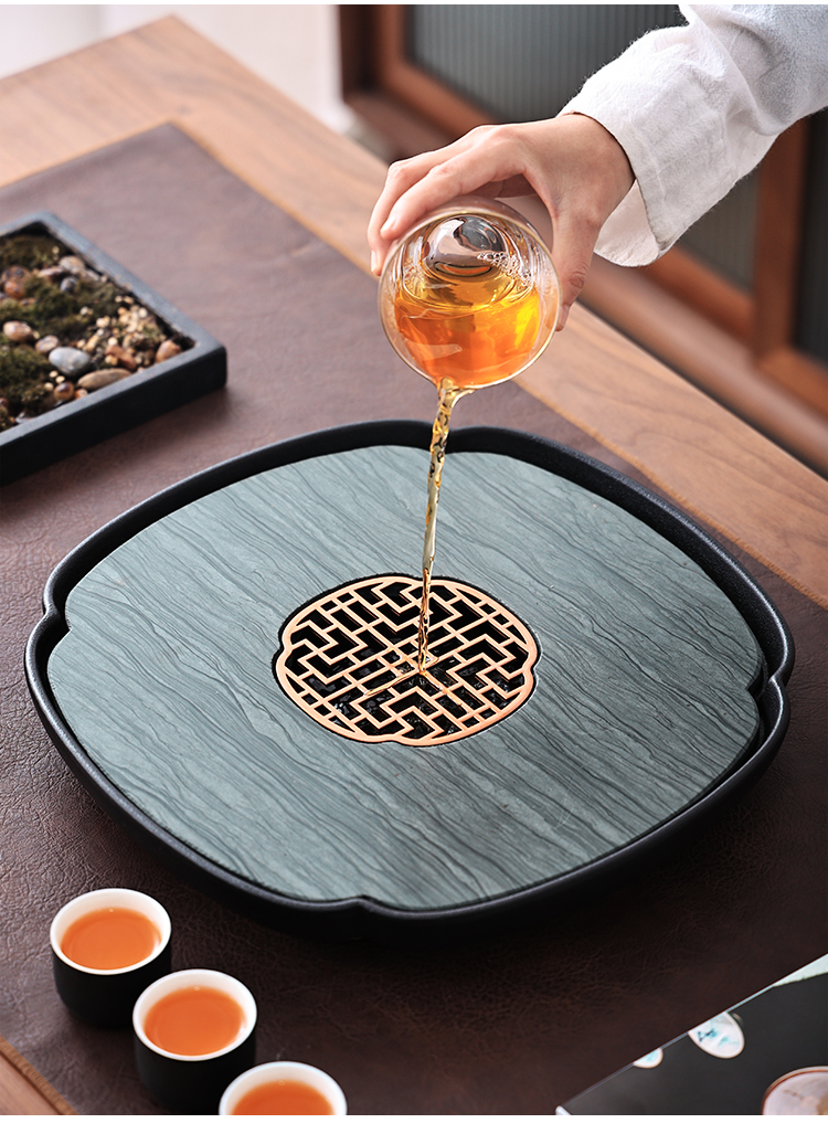 Tao Shangyin ceramic natural stone tea table storage and drainage dual-purpose modern simple home office small tea tray Kung Fu tea set lotus wood grain stone book window red