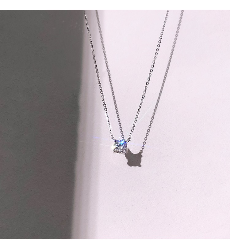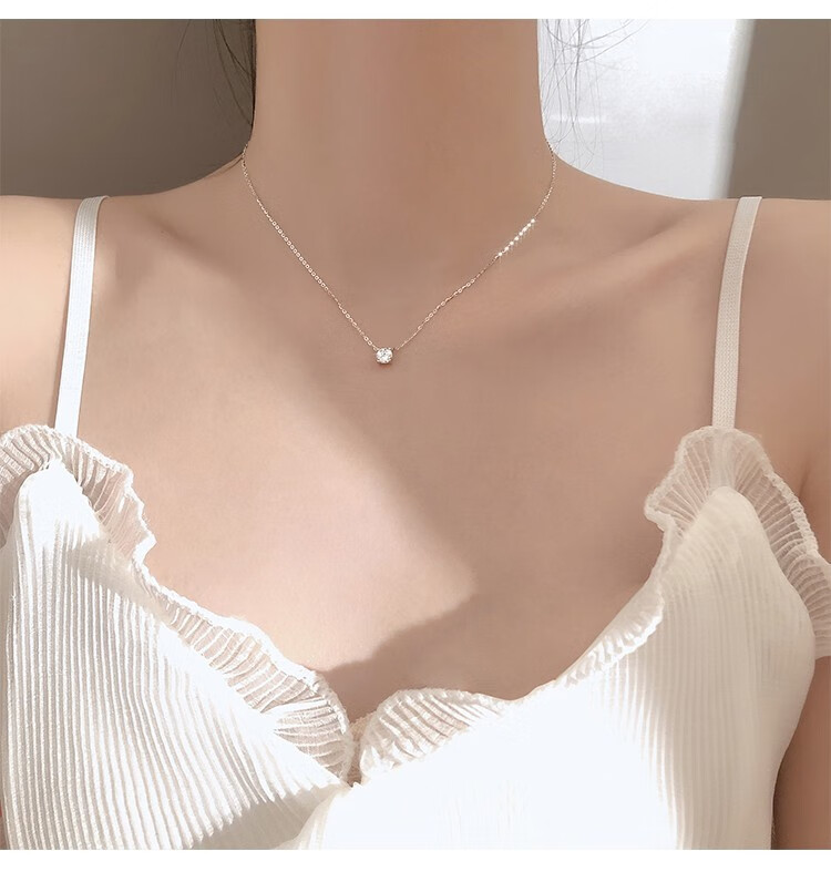 MZMZPT950 Platinum Necklace for Women with Sparkling Diamond Temperament Clavicle Chain ins Fairy Style Birthday Anniversary Gift for Girlfriend Light Luxury Style 5mm Sparkling Diamond Necklace - Super Generous
