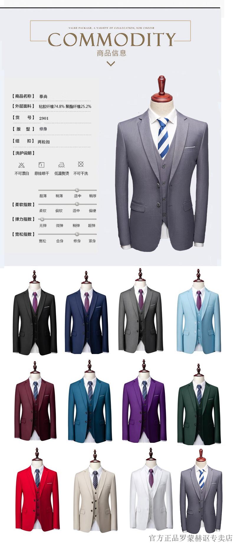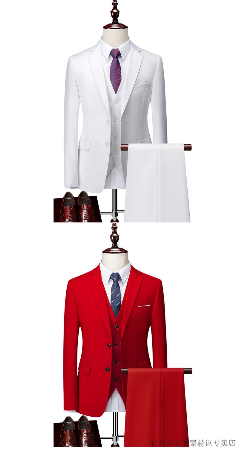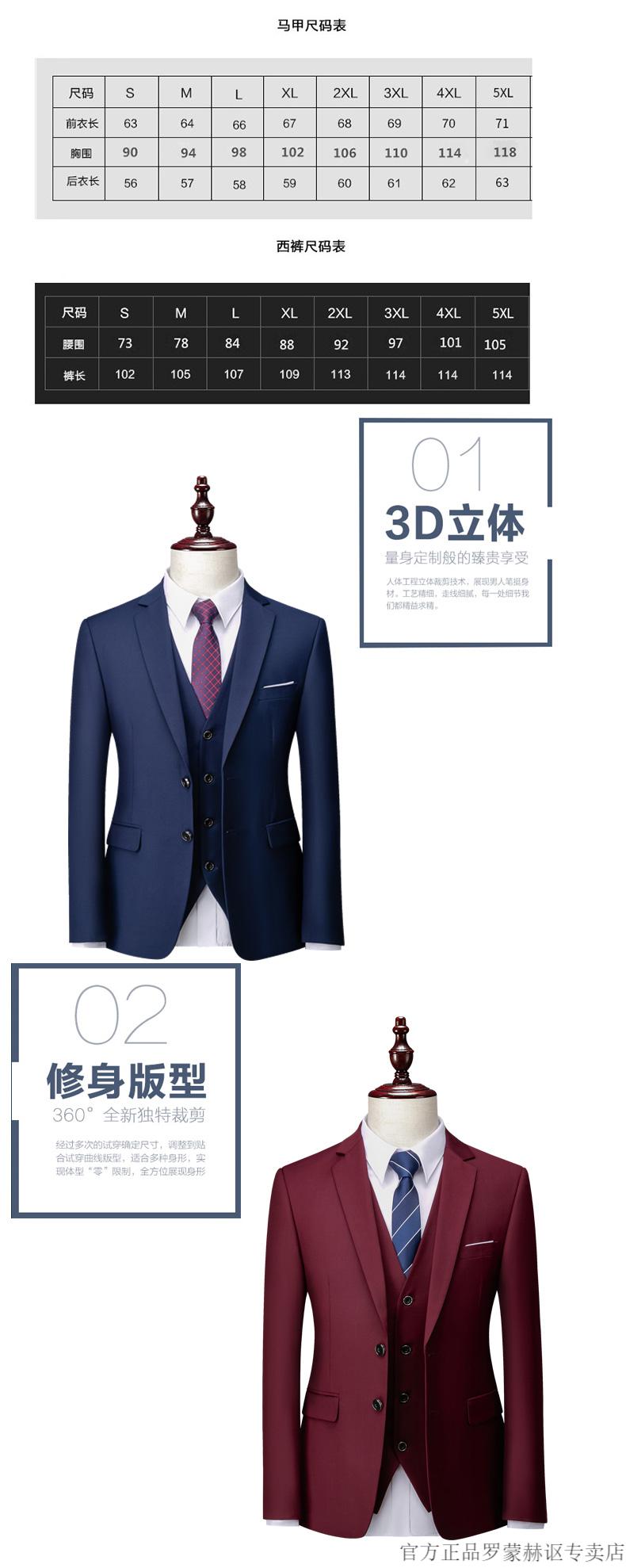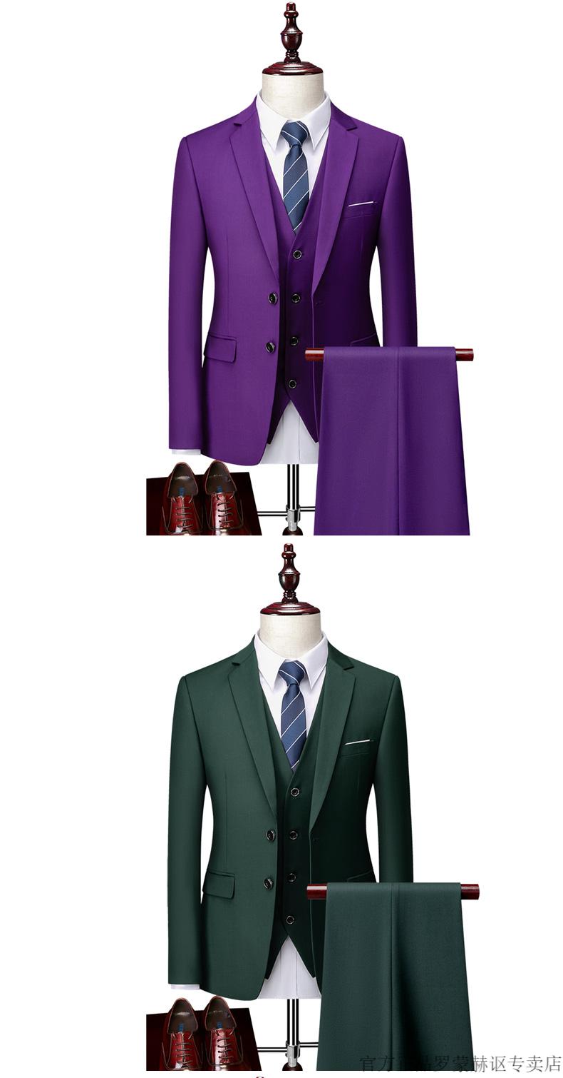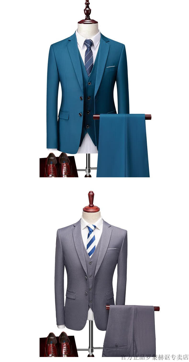 Luo Meng high-end men's suit suit, professional formal wear, Korean style slim fit groom's wedding dress and groomsmen's suit, apricot three-piece suit (top + vest + trousers) XL