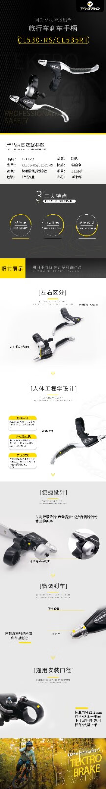 Yanhao Taiwan Yanhao CL530 CL535 travel bike brake lever with bell handle bicycle brake lever pair all black