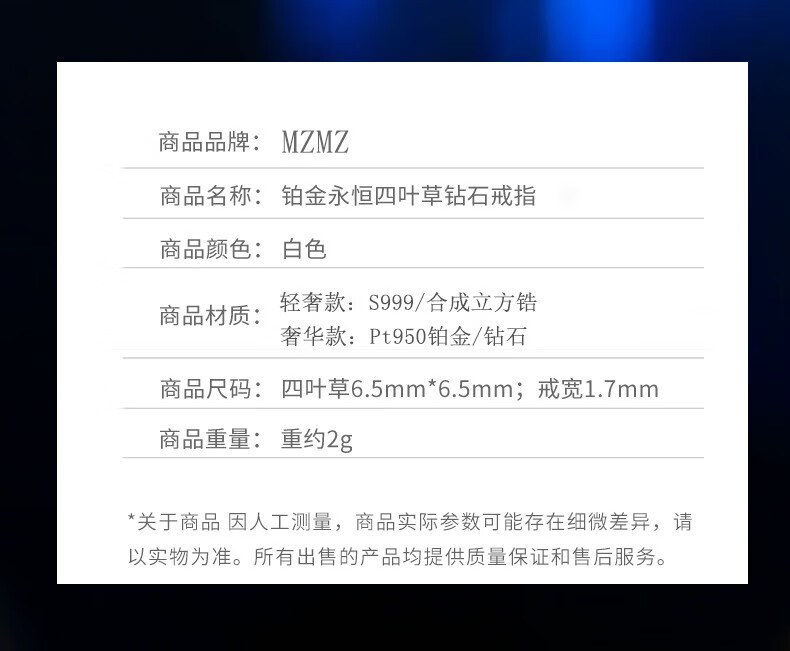 MZMZ platinum ring four-leaf clover diamond ring wedding birthday anniversary gift for girlfriend for girlfriend for wife light luxury four-leaf clover ring