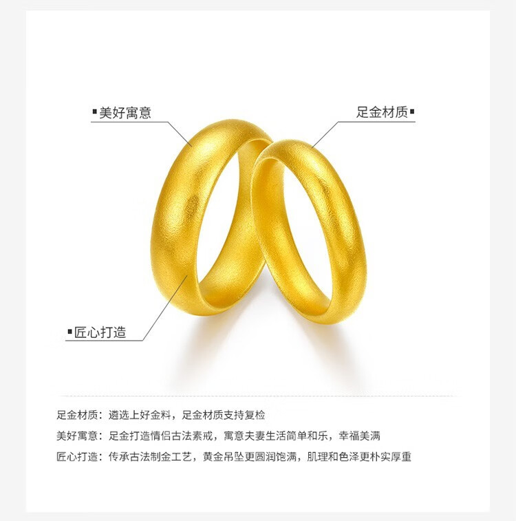 Gold Jewelry Wang Jewelry Gold Ring Pure Gold 999 Ancient Method Smooth Ring Men's and Women's Gold Custom Model 1-10 Days Shipping Customized 40g