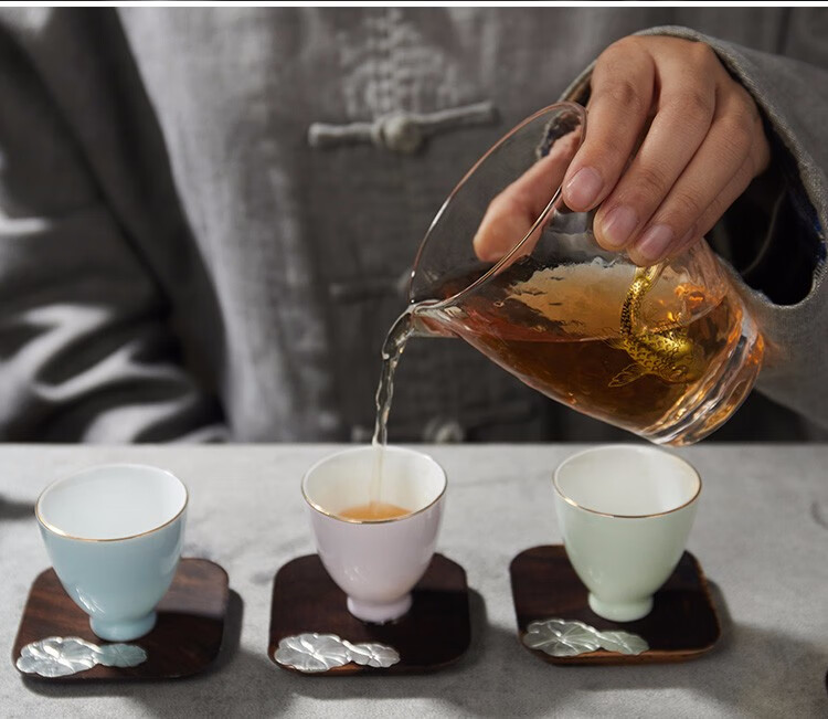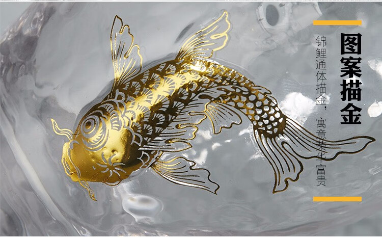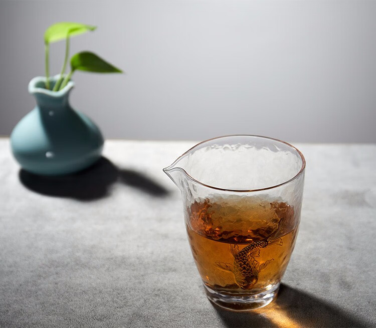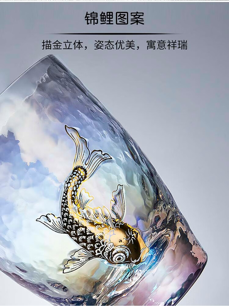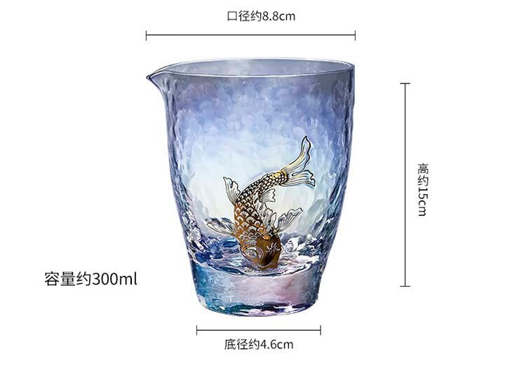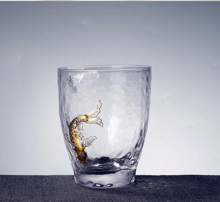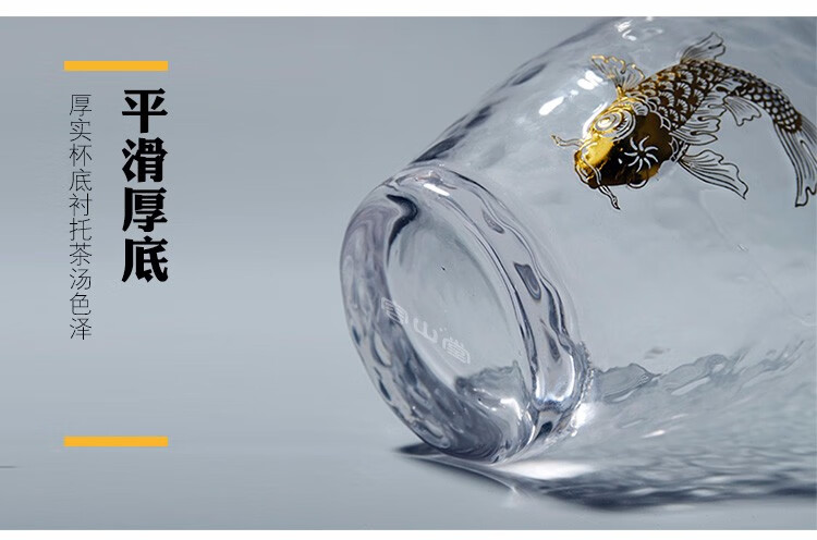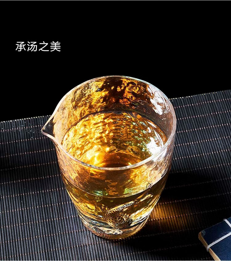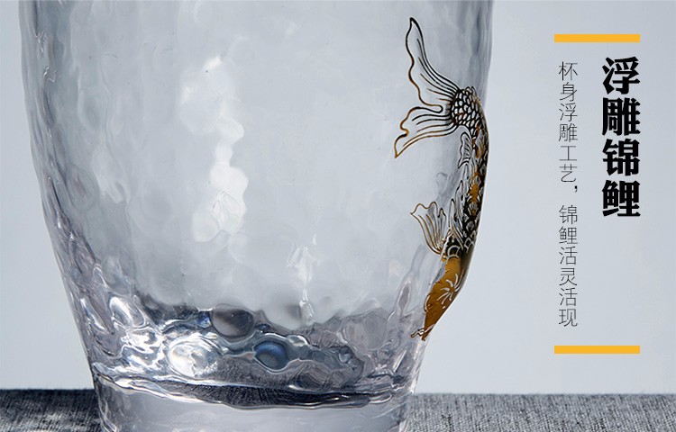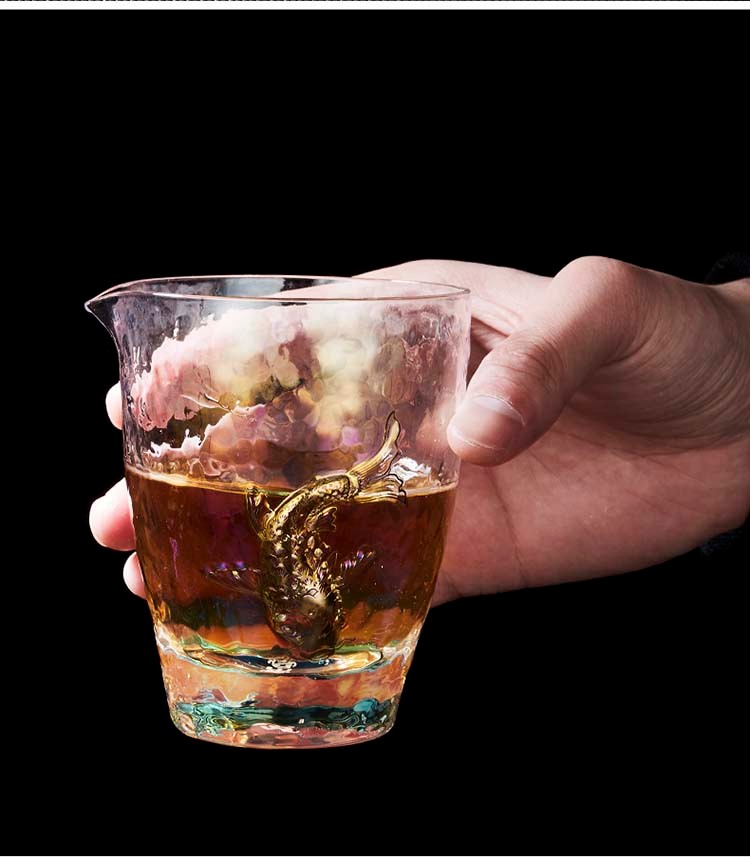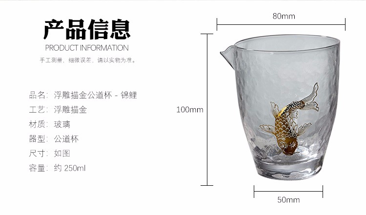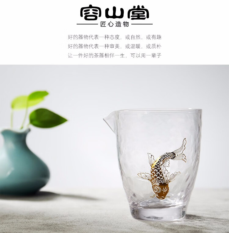 Rongshantang glass fair cup Japanese style hammered gold embossed thickened embossed heat-resistant large tea set Kung Fu tea set accessories green tea cup Gold embossed koi glass fair cup