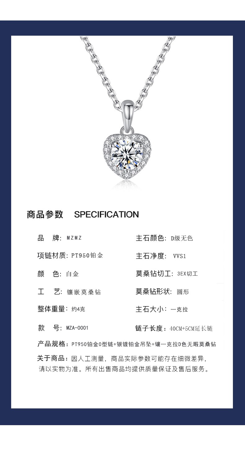 MZMZ platinum necklace for girl's birthday, Valentine's Day gift for girlfriend and wife, diamond PT950 platinum jewelry, free engraving, PT950 platinum necklace + set with one carat D color moissanite