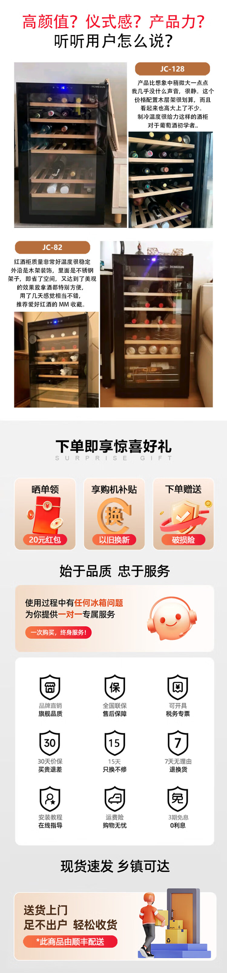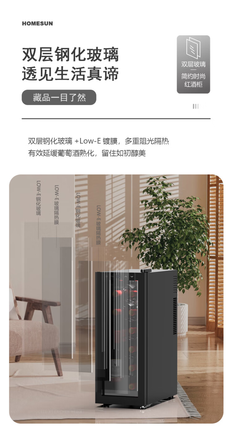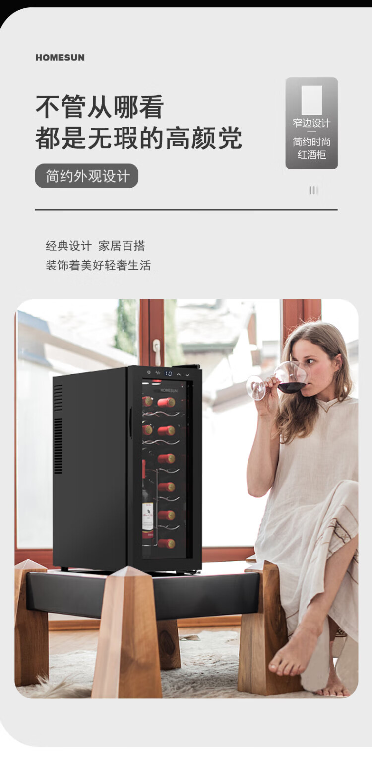 HOMESUN Red Wine Cabinet Constant Temperature Electronic Constant Temperature Wine Cabinet Mini Red Wine Storage Cabinet Small Wine Cabinet European Living Room Wine Cabinet 28 Pack (Upgraded Compressor Type) 28 Bottles