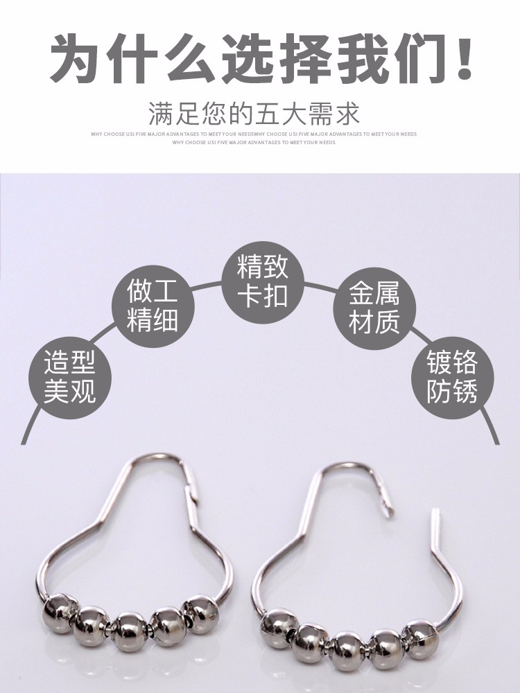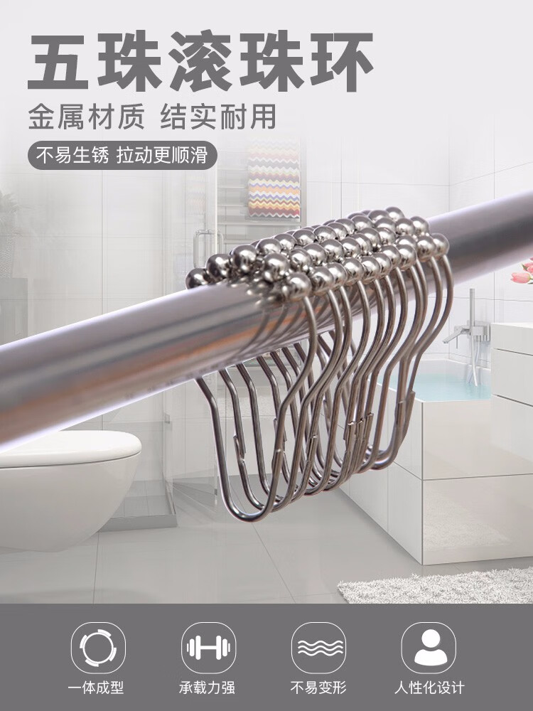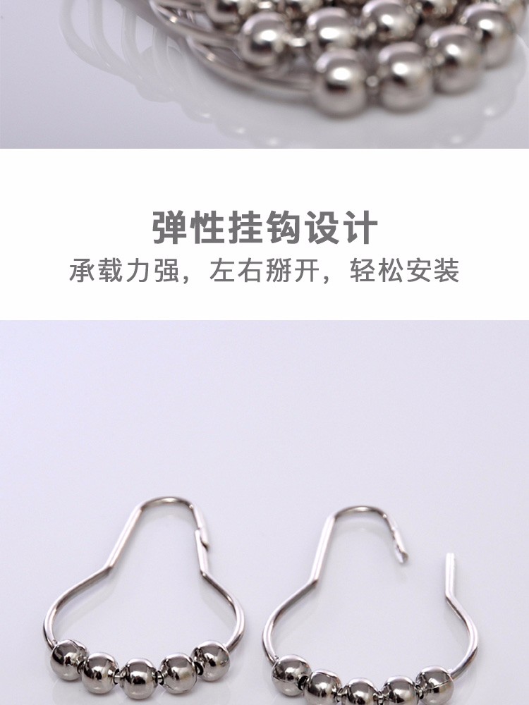 Youzun door curtains, curtains, shower curtain accessories, shower curtain rod hanging rings, stainless metal ball hooks, shower curtain rings, bathroom accessories hooks, five-bead hanging rings, shower curtain rod pull ring rings, breakable rings, 12 pieces of ball rings