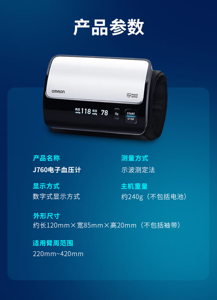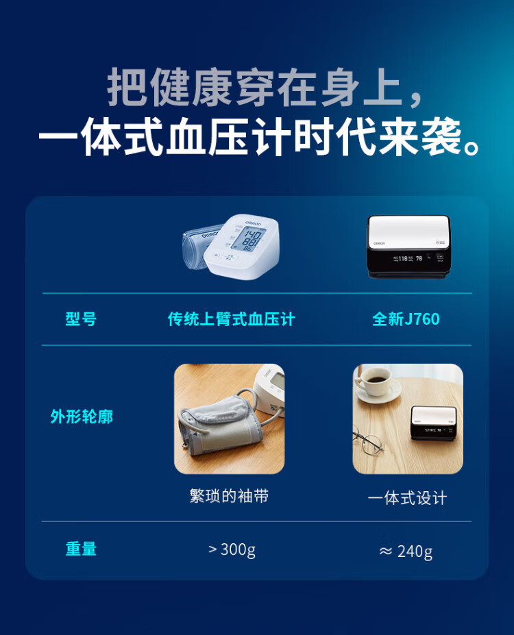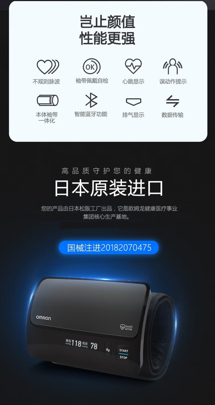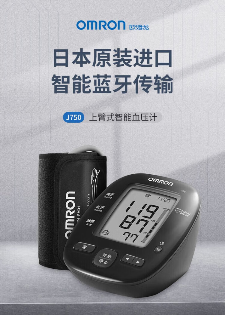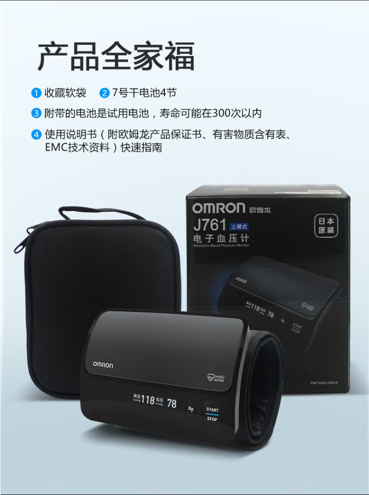 Omron Electronic Blood Pressure Monitor Japan Original Imported Blood Pressure Meter Home Intelligent Bluetooth Blood Pressure Measurement Medical High-Precision High-end Upper Arm Integrated J760+Small Portable+Storage Bag