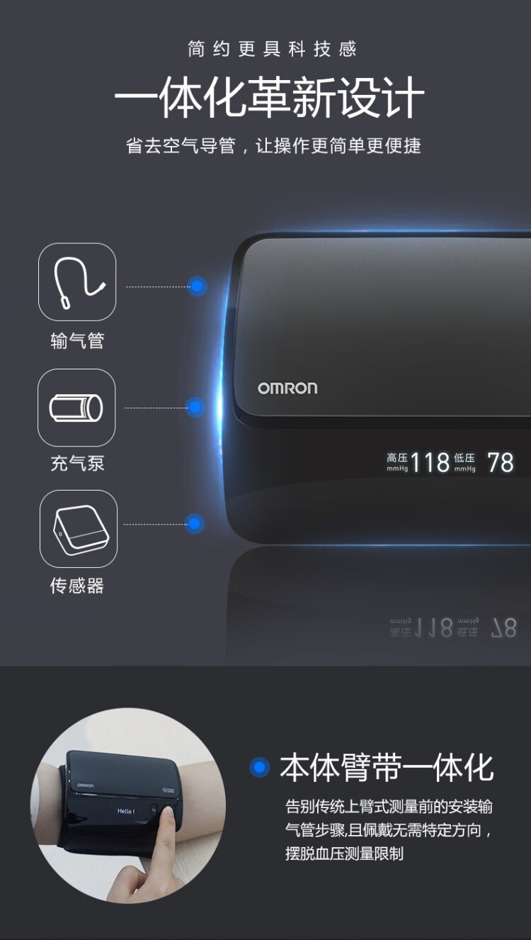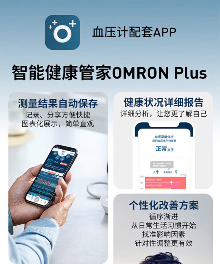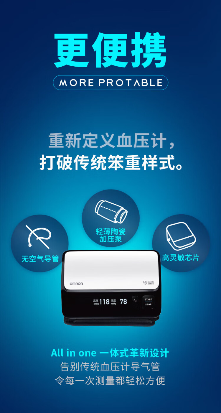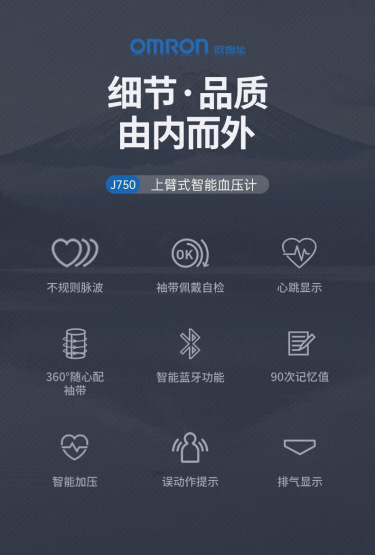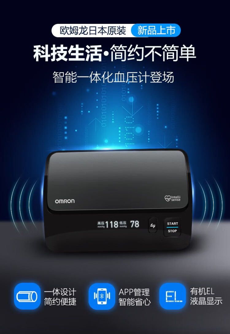 Omron Electronic Blood Pressure Monitor Japan Original Imported Blood Pressure Meter Home Intelligent Bluetooth Blood Pressure Measurement Medical High-Precision High-end Upper Arm Integrated J760+Small Portable+Storage Bag