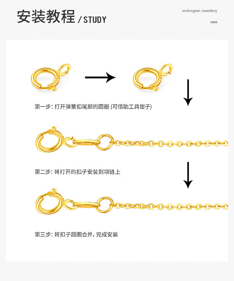 Mengjinyuan 18K gold spring buckle color gold rose gold necklace accessories button DIY matching piece button opening 18K yellow about 4.8mm about 0.08g