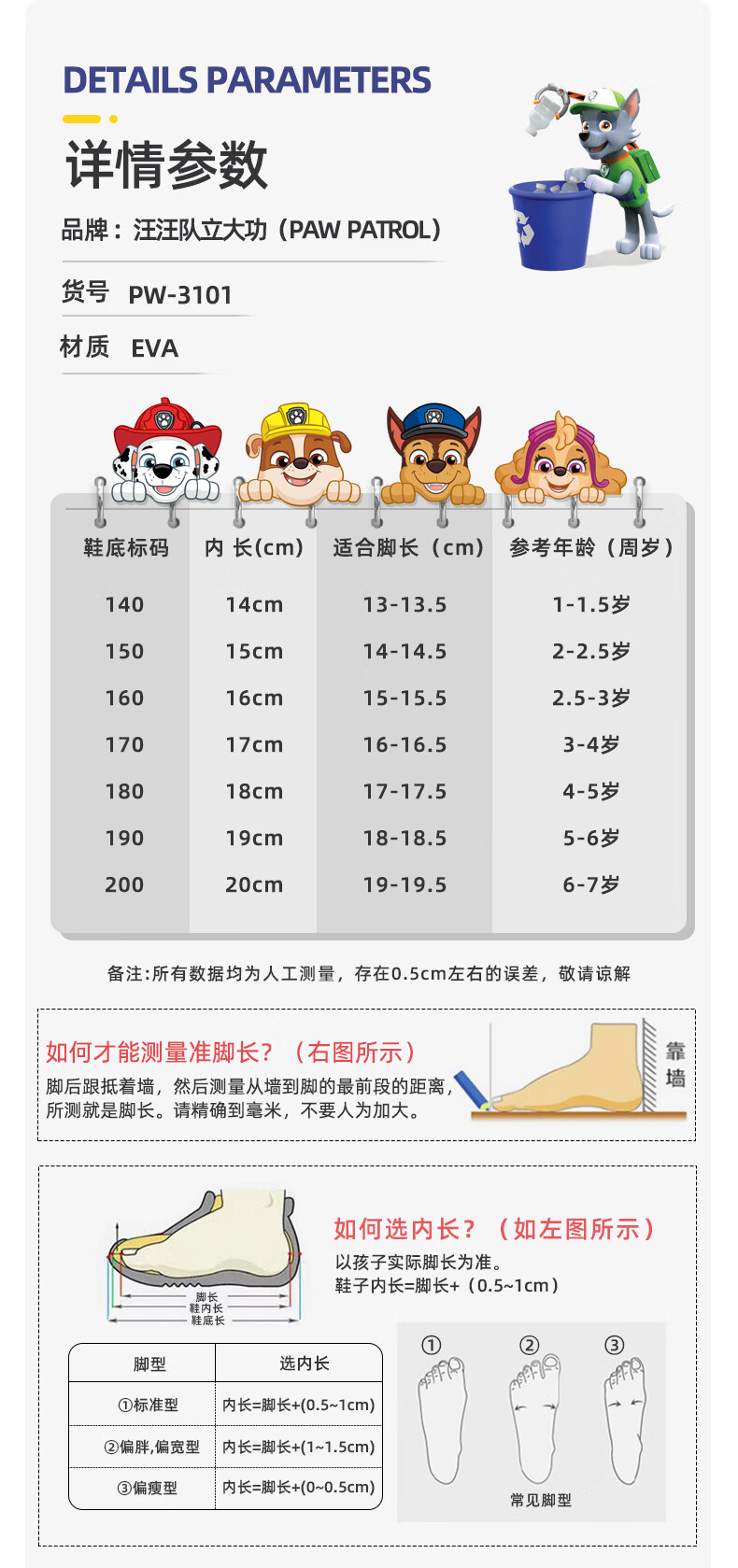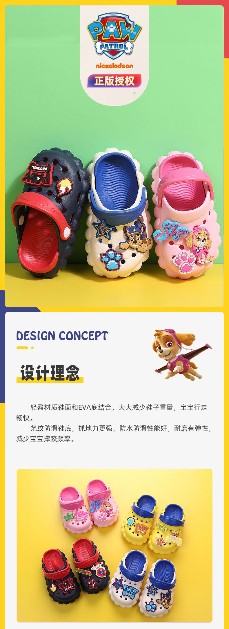 PAW PATROL PAW Team Children's Slippers Summer Boys and Girls Baby Croc Shoes Indoor Non-Slip Soft Bottom Toddler Baotou Sandals 3101 Rice White Archie 17 Inner Length 17cm 170 Code