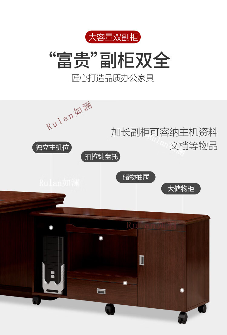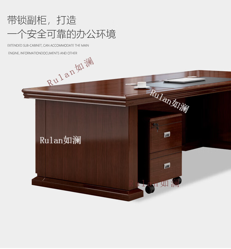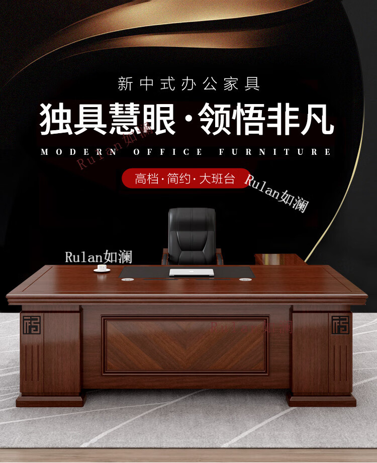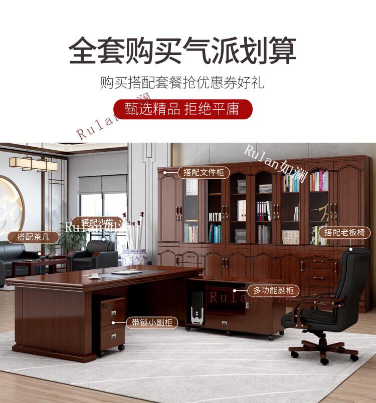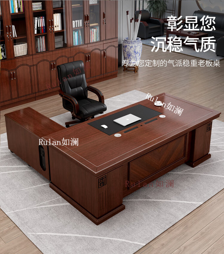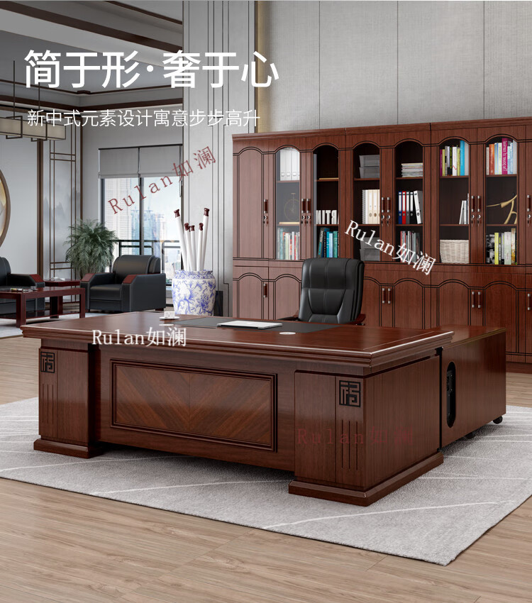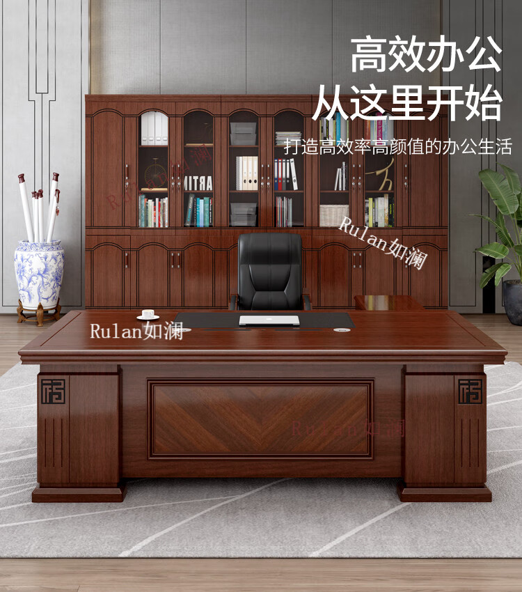 Rulan boss desk office desk and chair combination new Chinese style executive desk office Chinese style president desk manager desk supervisor desk 2.4 meters table + double side cabinets