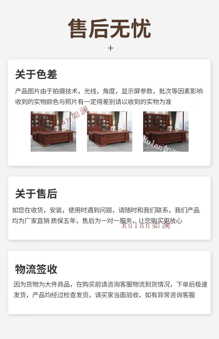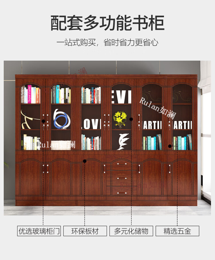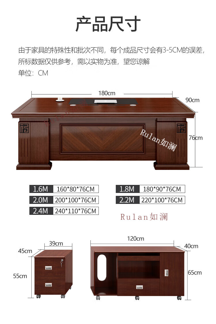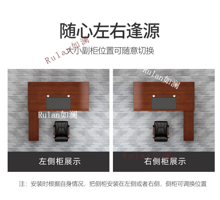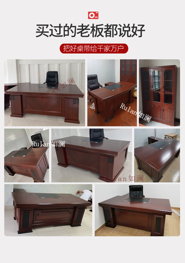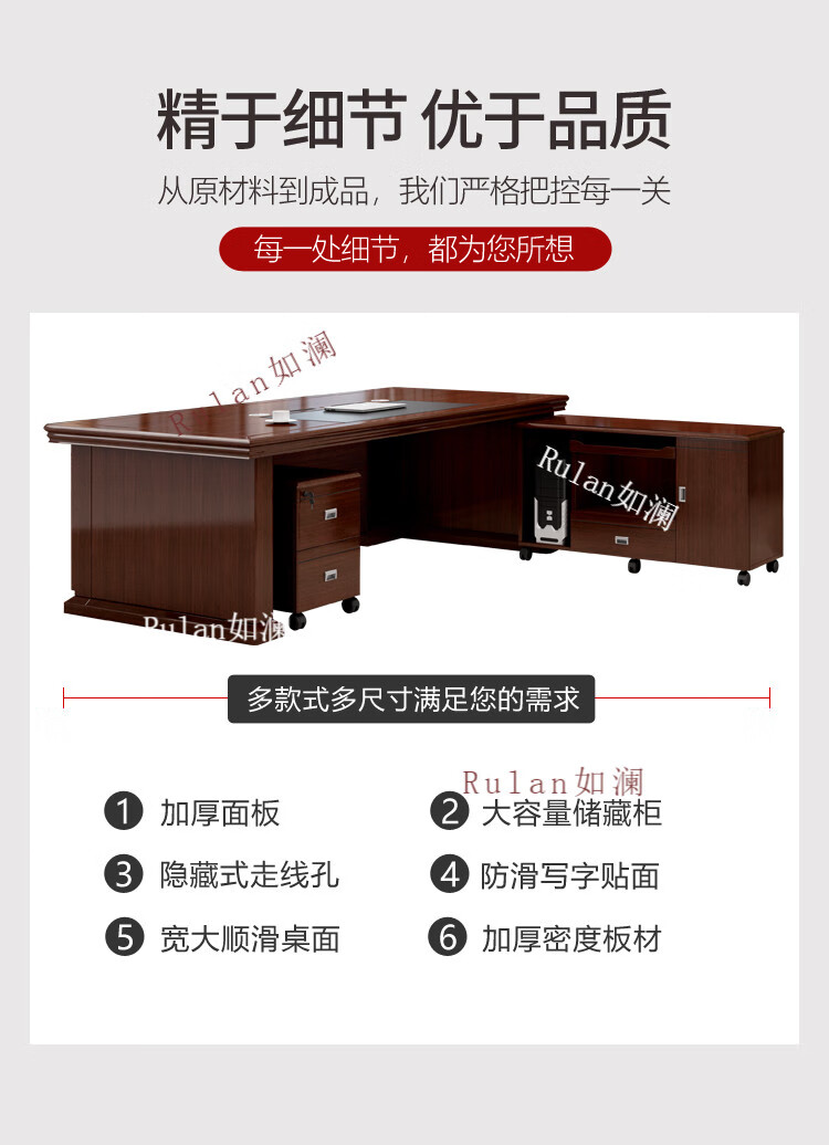 Rulan boss desk office desk and chair combination new Chinese style executive desk office Chinese style president desk manager desk supervisor desk 2.4 meters table + double side cabinets