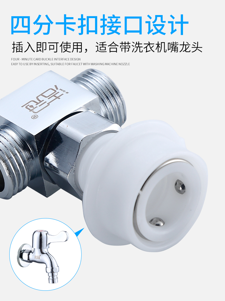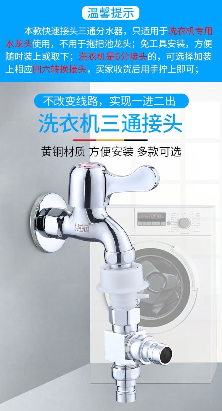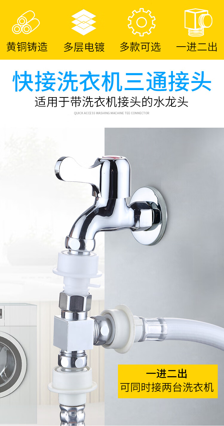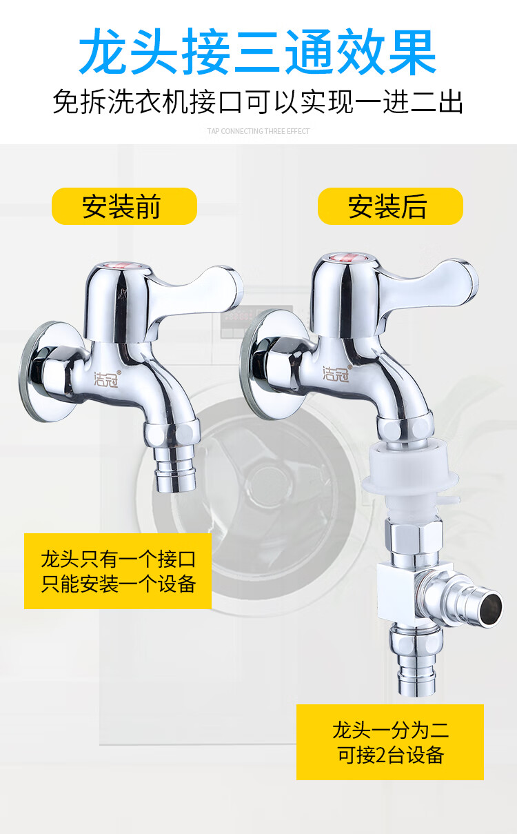 JIEGUAN washing machine faucet one-to-two adapter dual-use switch conversion diverter one-in, two-out, three-way water diverter valve C type + 4-point washing machine nozzle 2