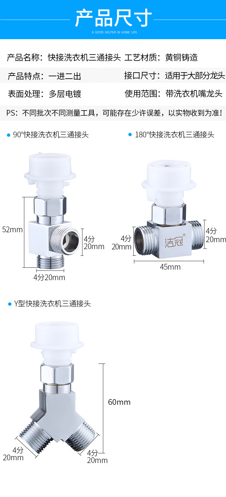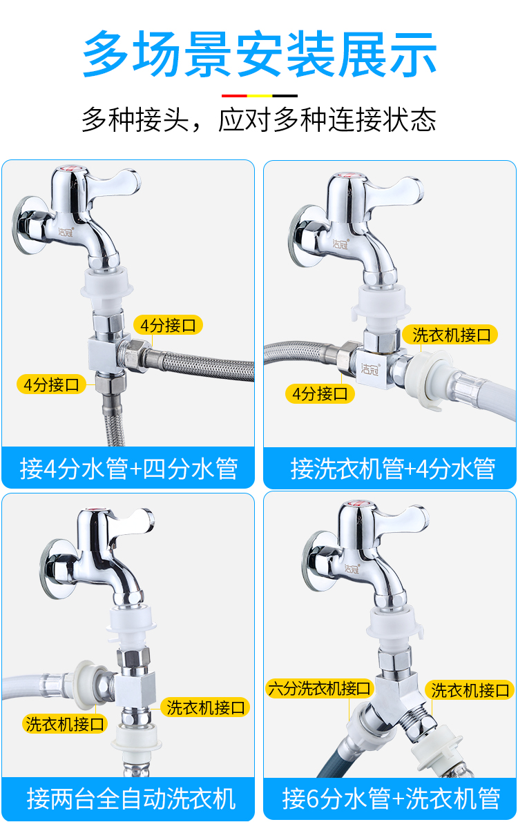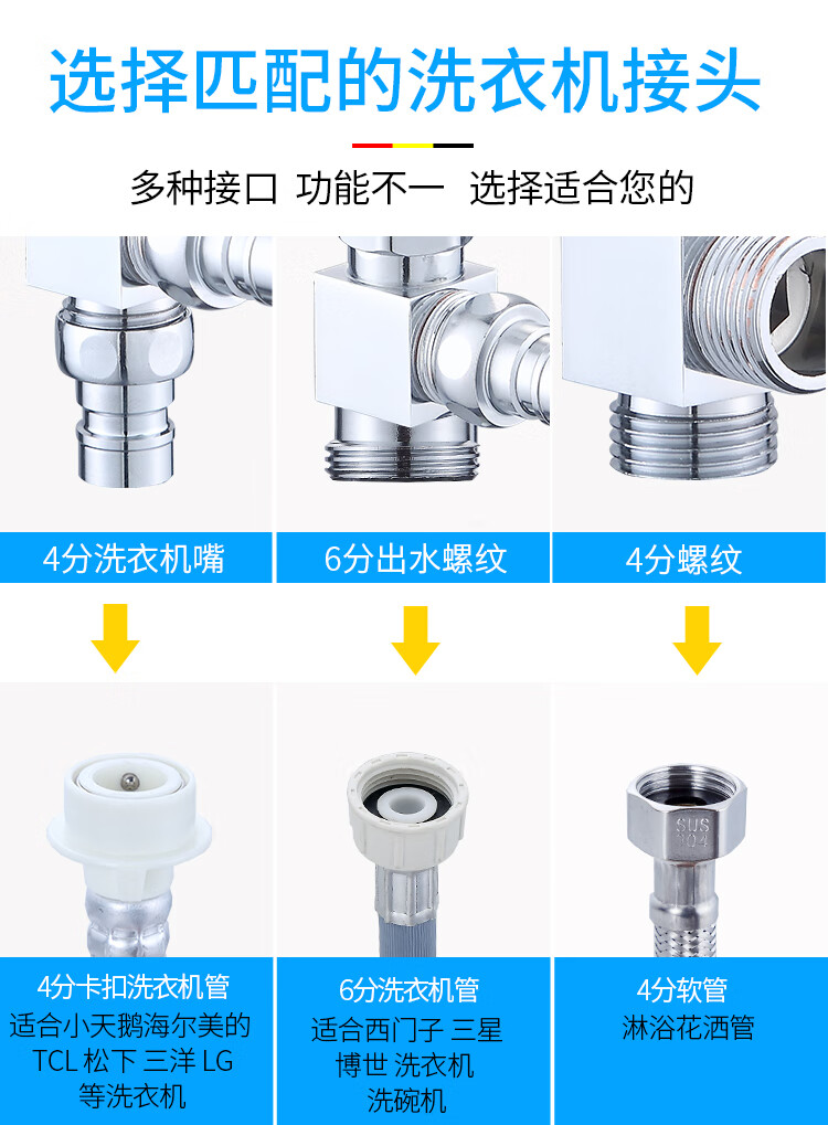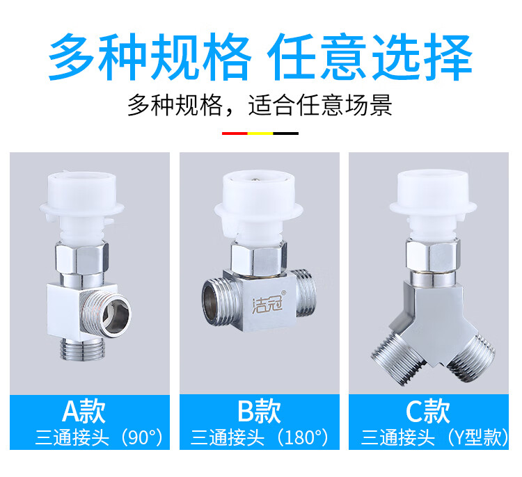 JIEGUAN washing machine faucet one-to-two adapter dual-use switch conversion diverter one-in, two-out, three-way water diverter valve C type + 4-point washing machine nozzle 2