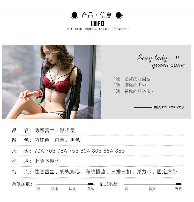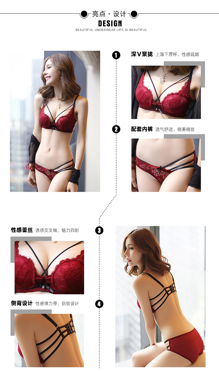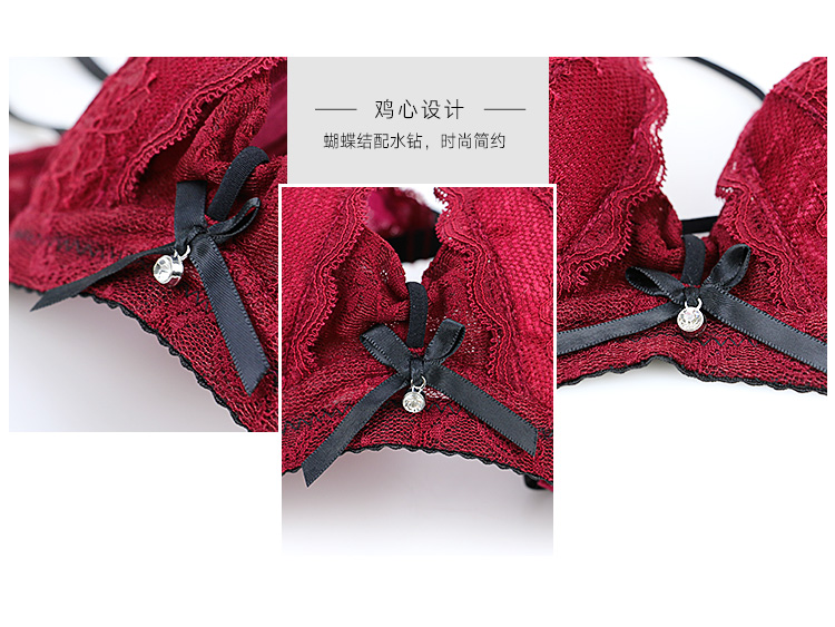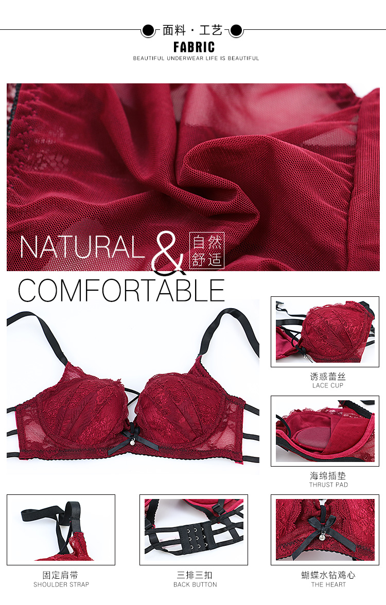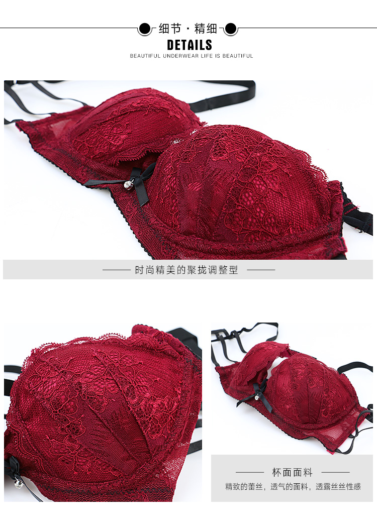 Xuansifu brand underwear women's pure lust lace wedding sexy bra set for the year of the horse, small breasts gathered, burgundy suit burgundy suit 80B /36