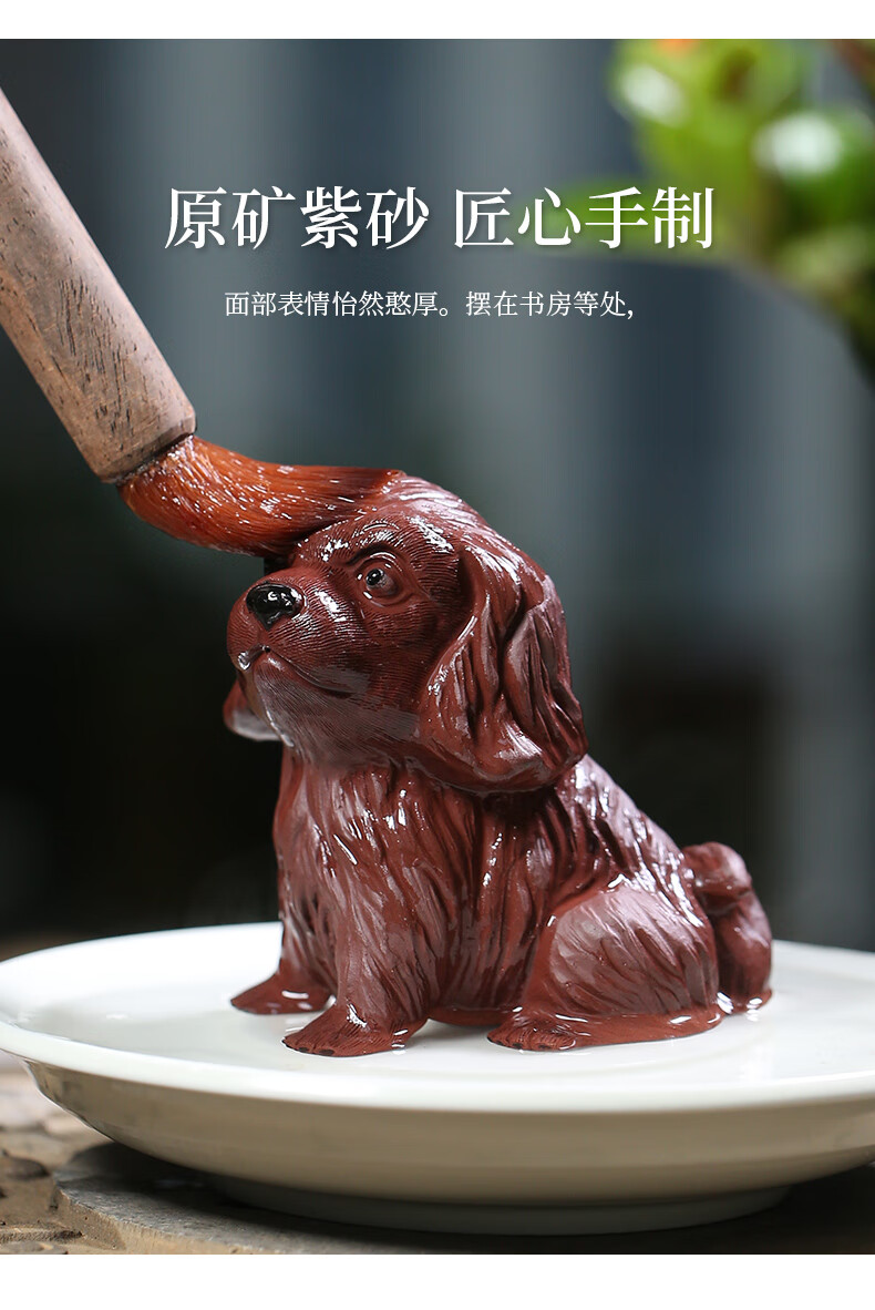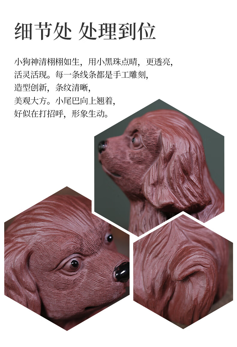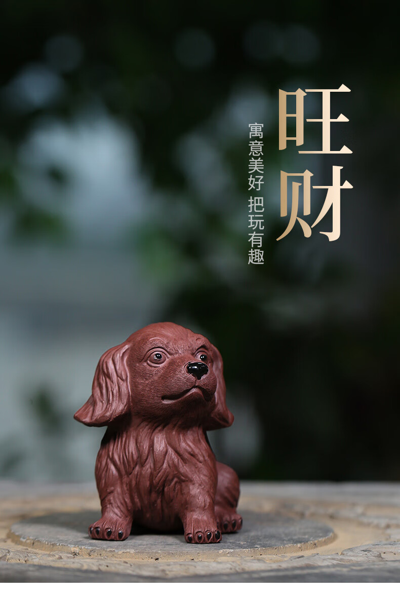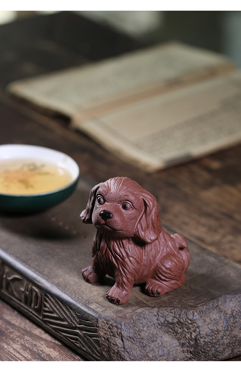 Yuehu Mingqing Yixing purple sand tea pet cute dog ornaments handmade can raise tea tray accessories tea play hair pulling and wealth making puppy