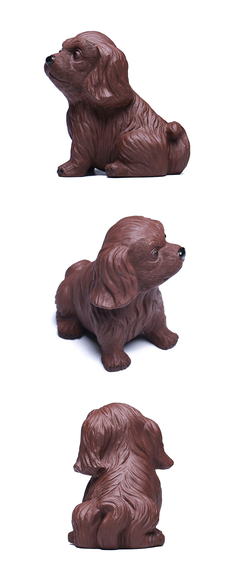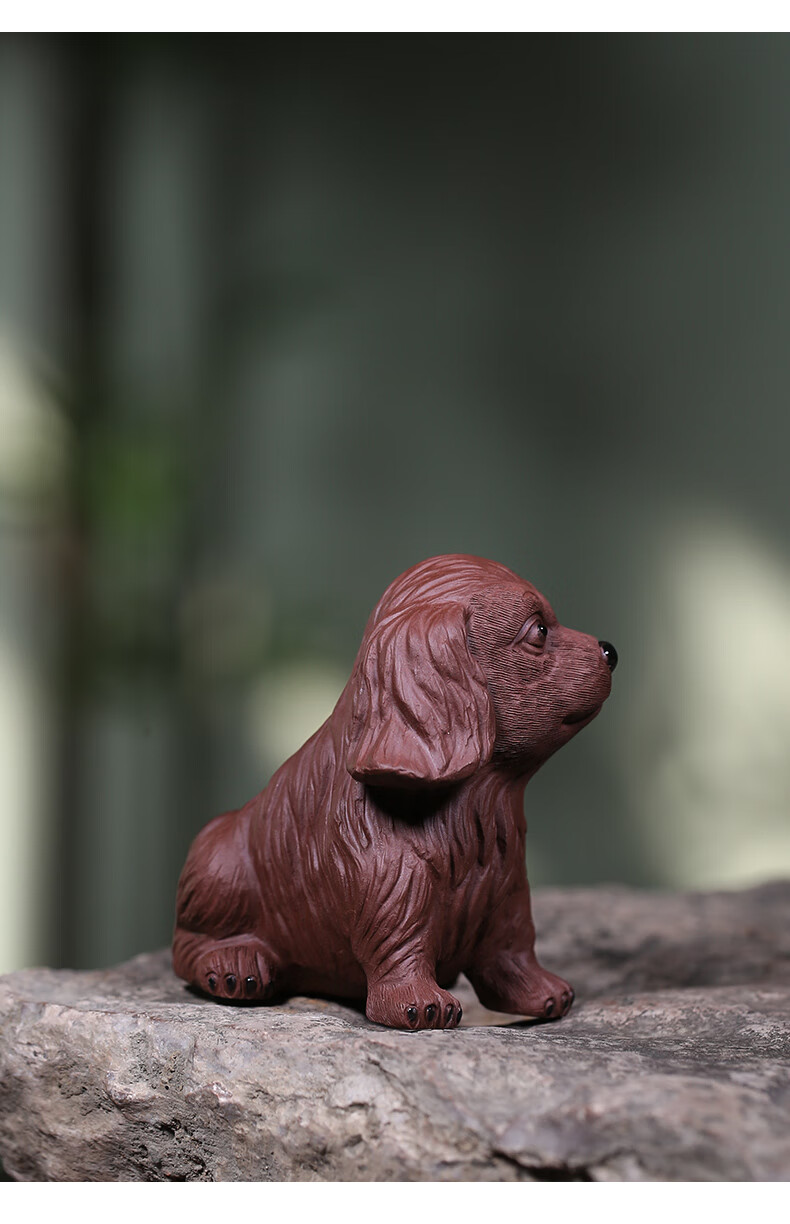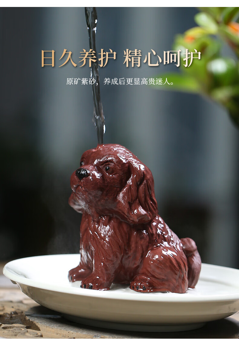 Yuehu Mingqing Yixing purple sand tea pet cute dog ornaments handmade can raise tea tray accessories tea play hair pulling and wealth making puppy