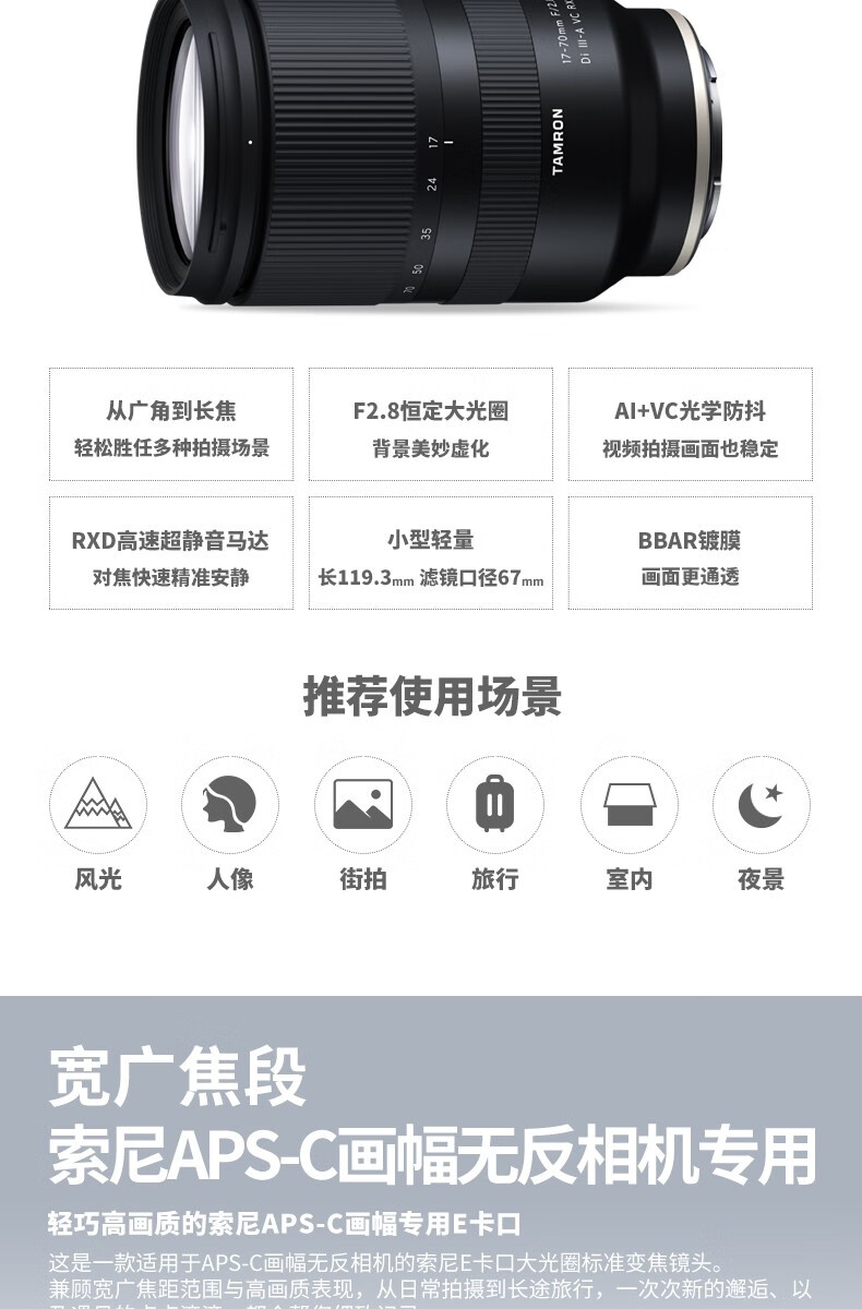 Tamron 17-70mm F2.8 B070 Anti-Shake Large Aperture Micro Single Lens Half Frame Scenery Travel Street Photography Sony E-mount Official Standard (Free Main Picture)