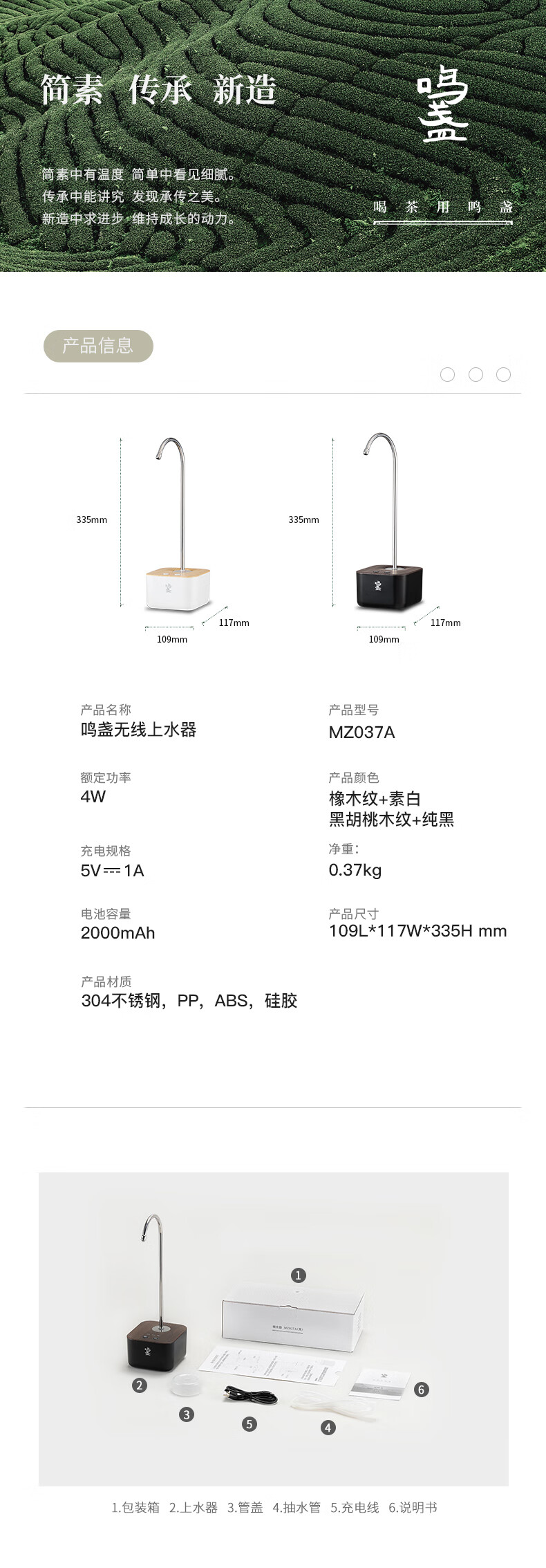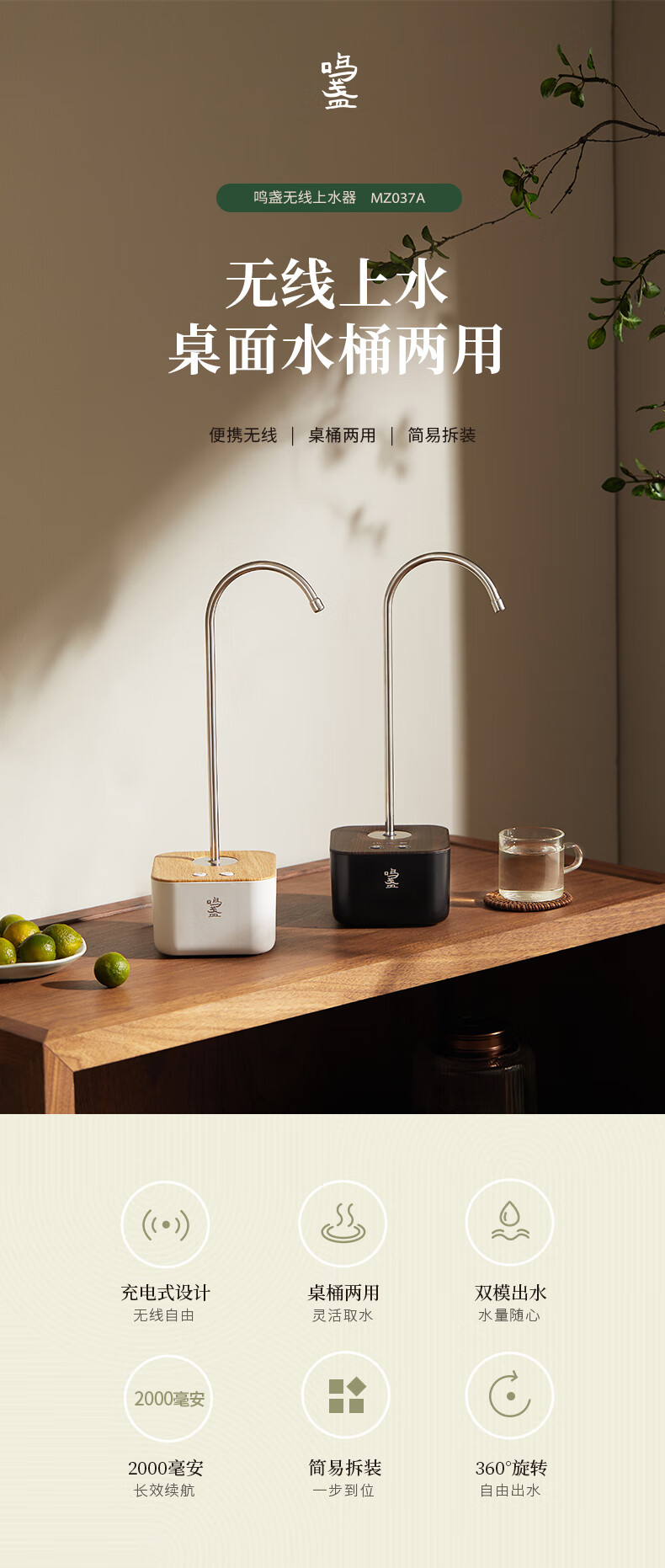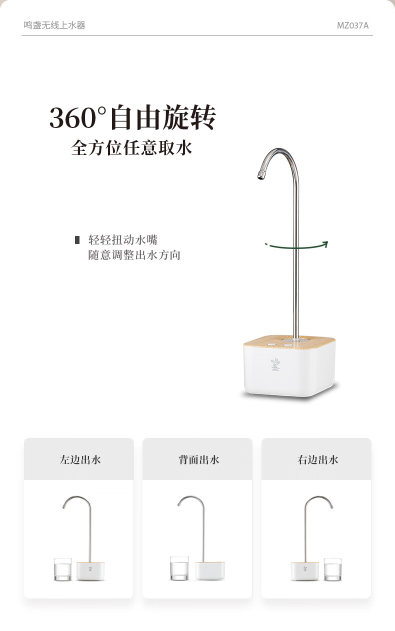 Mingzhan Intelligent Automatic Water Filler Rotatable Bucket Table Dual-Purpose Wireless Charging Bottled Water Pump Suction Pump Water Pressure MZ037A White (Wireless)
