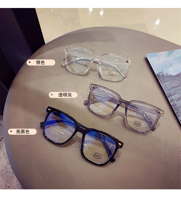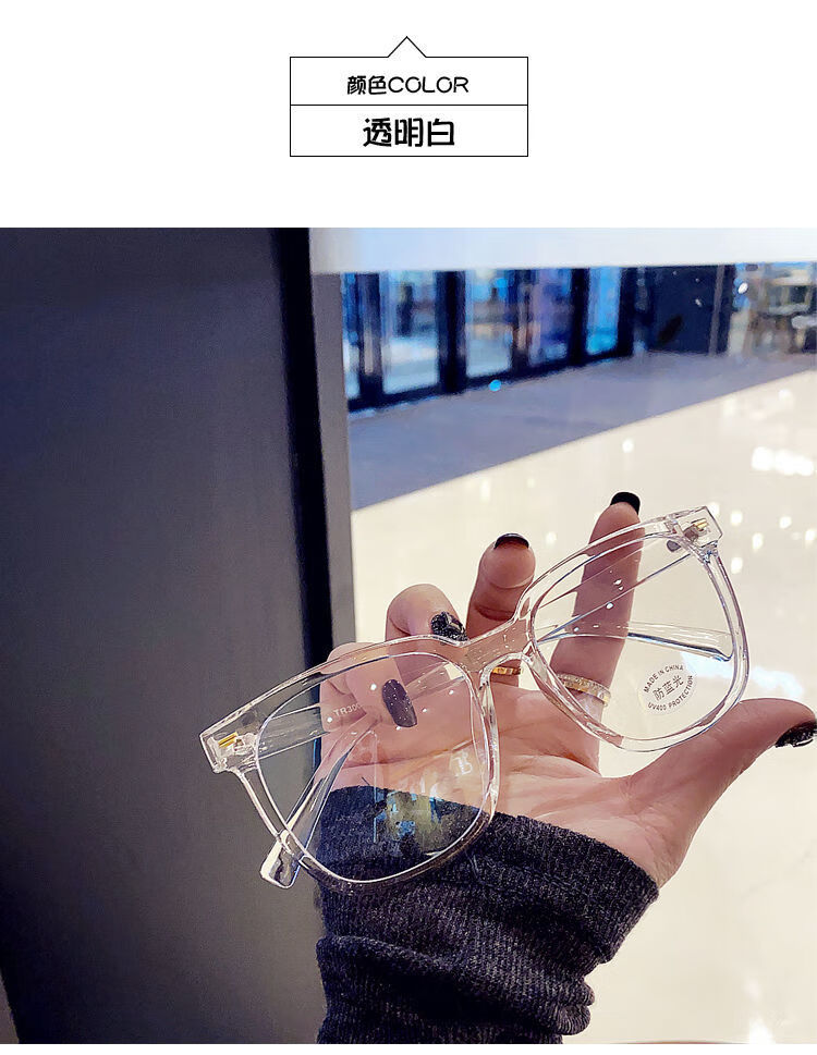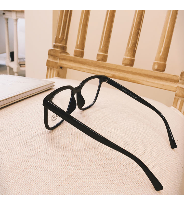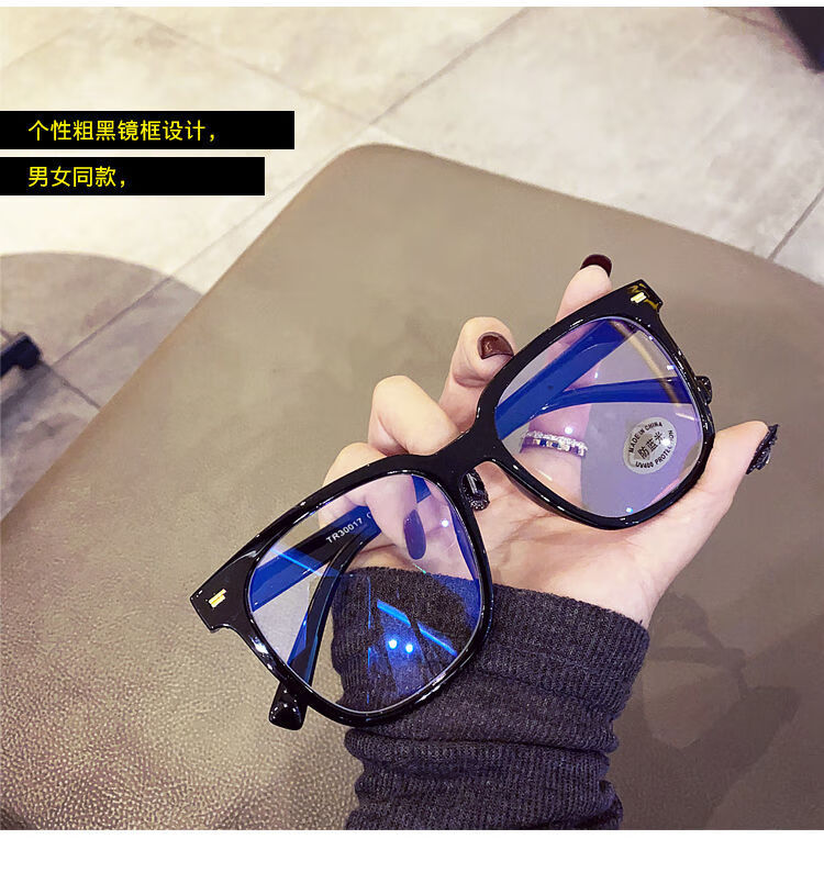 2021 New 2021 New Thick Black Frame Glasses for Men Showing Face Small Large Frame Plain Glasses Frame Anti-Blue Light Flat Glasses for Women Plain Fashion Trendy Style Bright Black Frame Non-prescription Flat Mirror Mirror Box + Lens Cloth