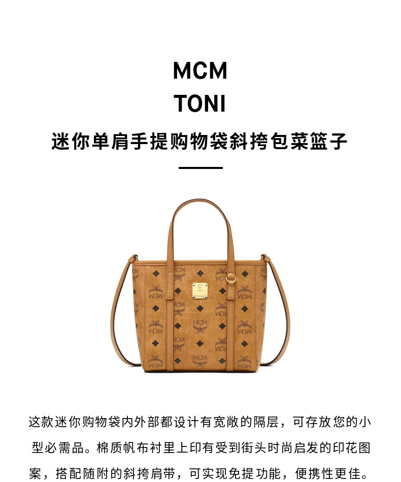 MCM Official Flag TONI Mini Vegetable Basket Handbag Tote Bag Commuting Bag Crossbody Women's Bag Cognac Color Mini