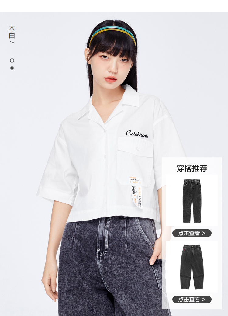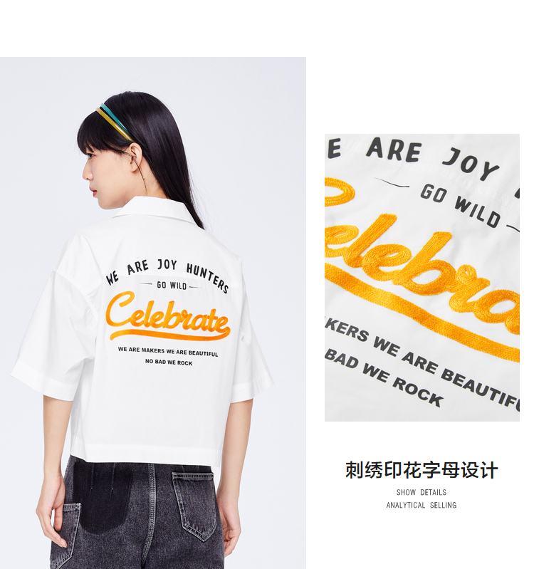 Semir National Treasure Semir short-sleeved shirt women's short embroidered loose summer personalized letter top trendy white 1100 150/76A/XS