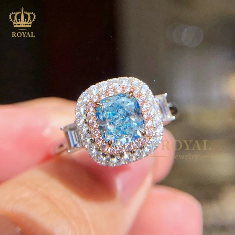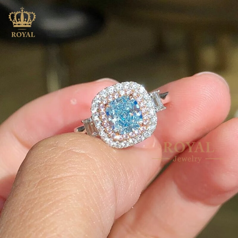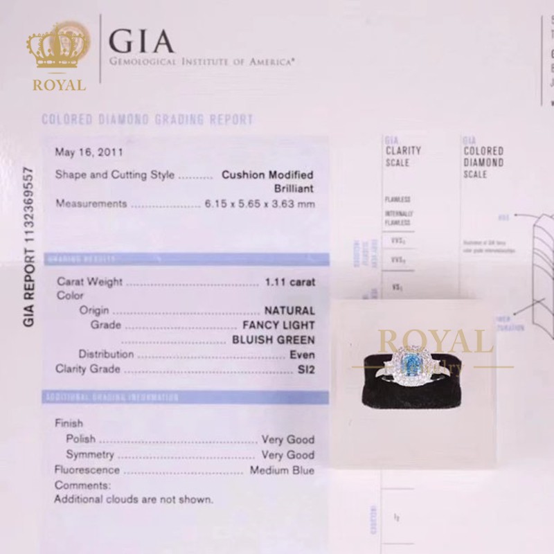 ROYALPICK blue-green diamond ring 1.11CT women's ring diamond ring 18k gold engagement wedding gift to girlfriend and wife birthday gift