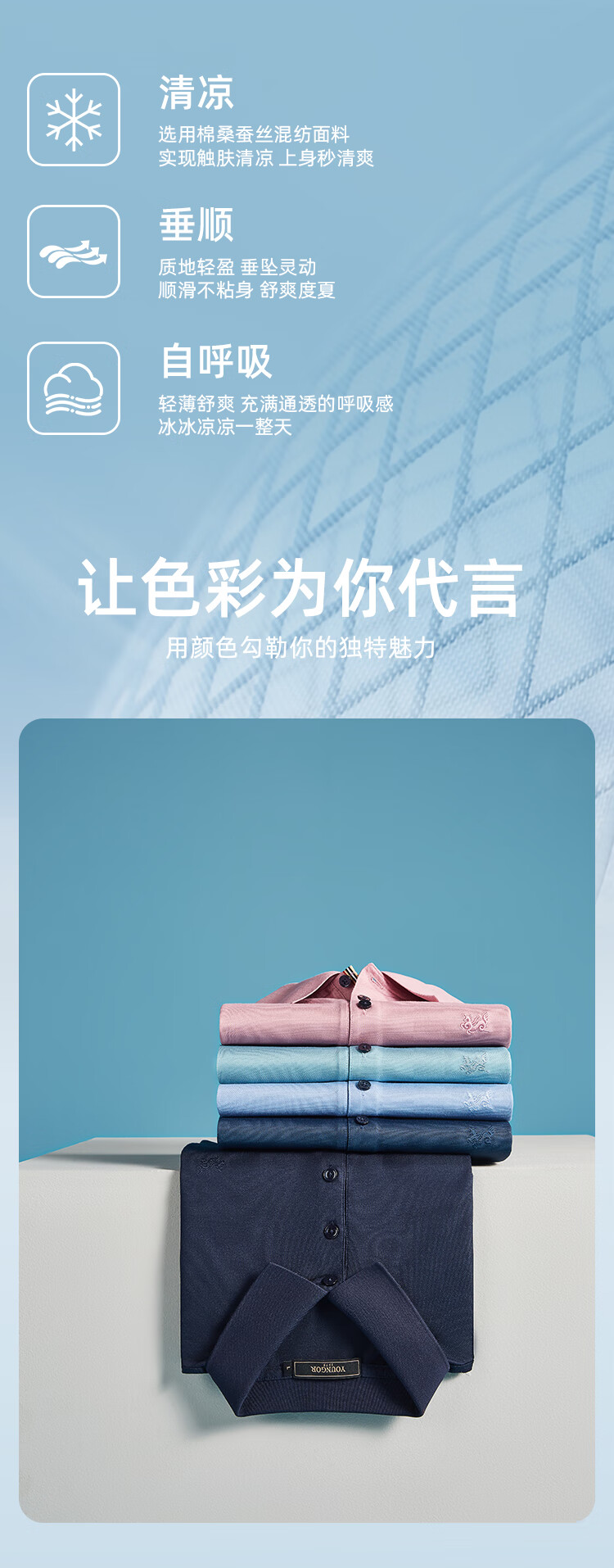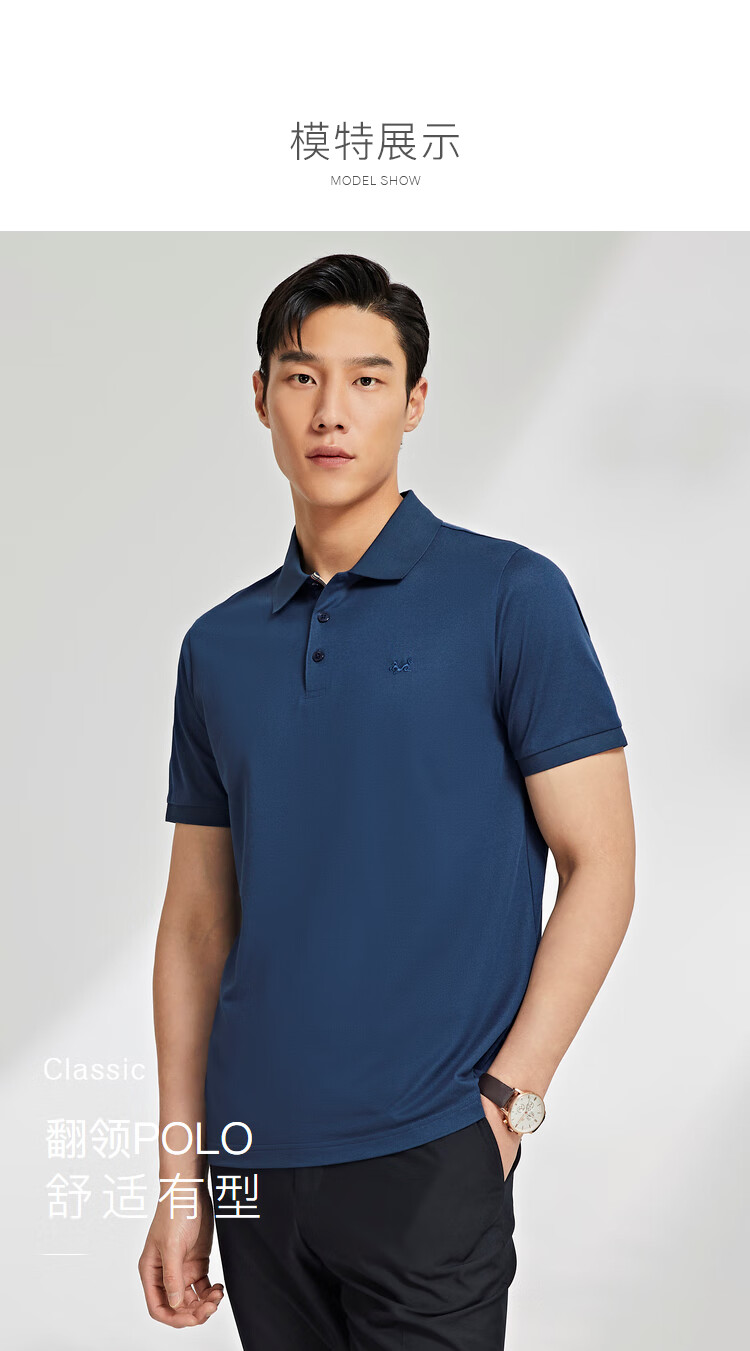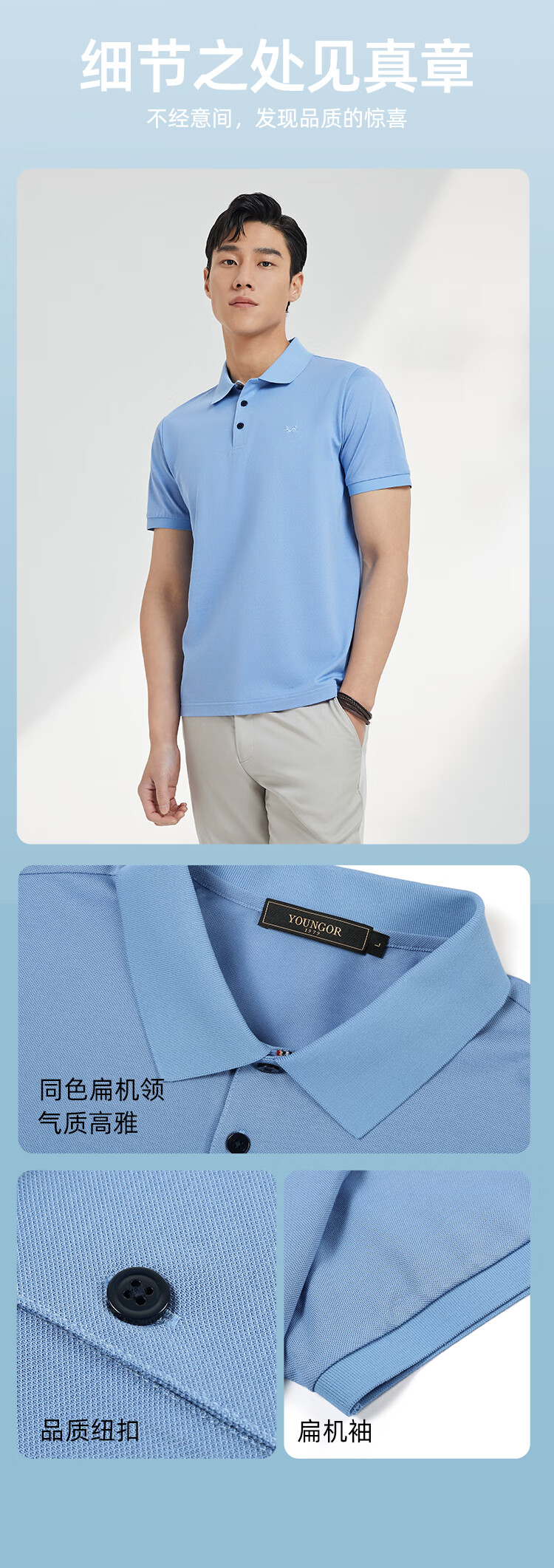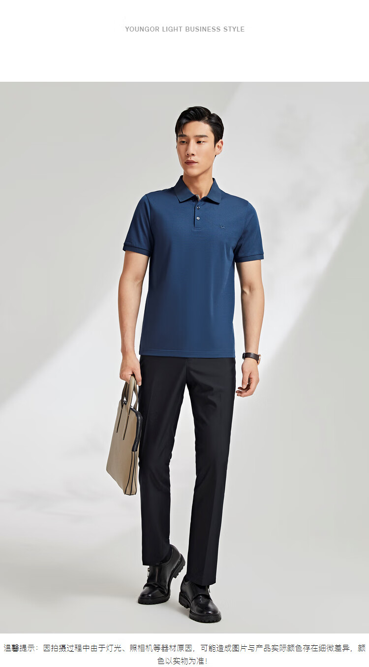 YOUNGOR POLO shirt men's POLO shirt solid color polo shirt light business blue green 2XL