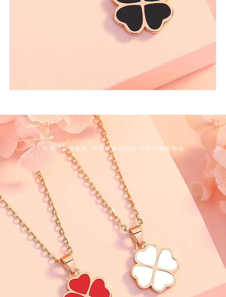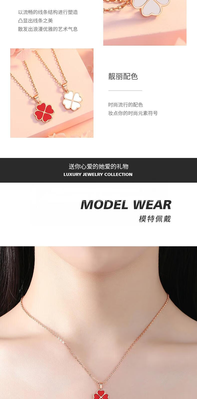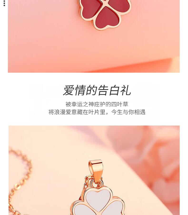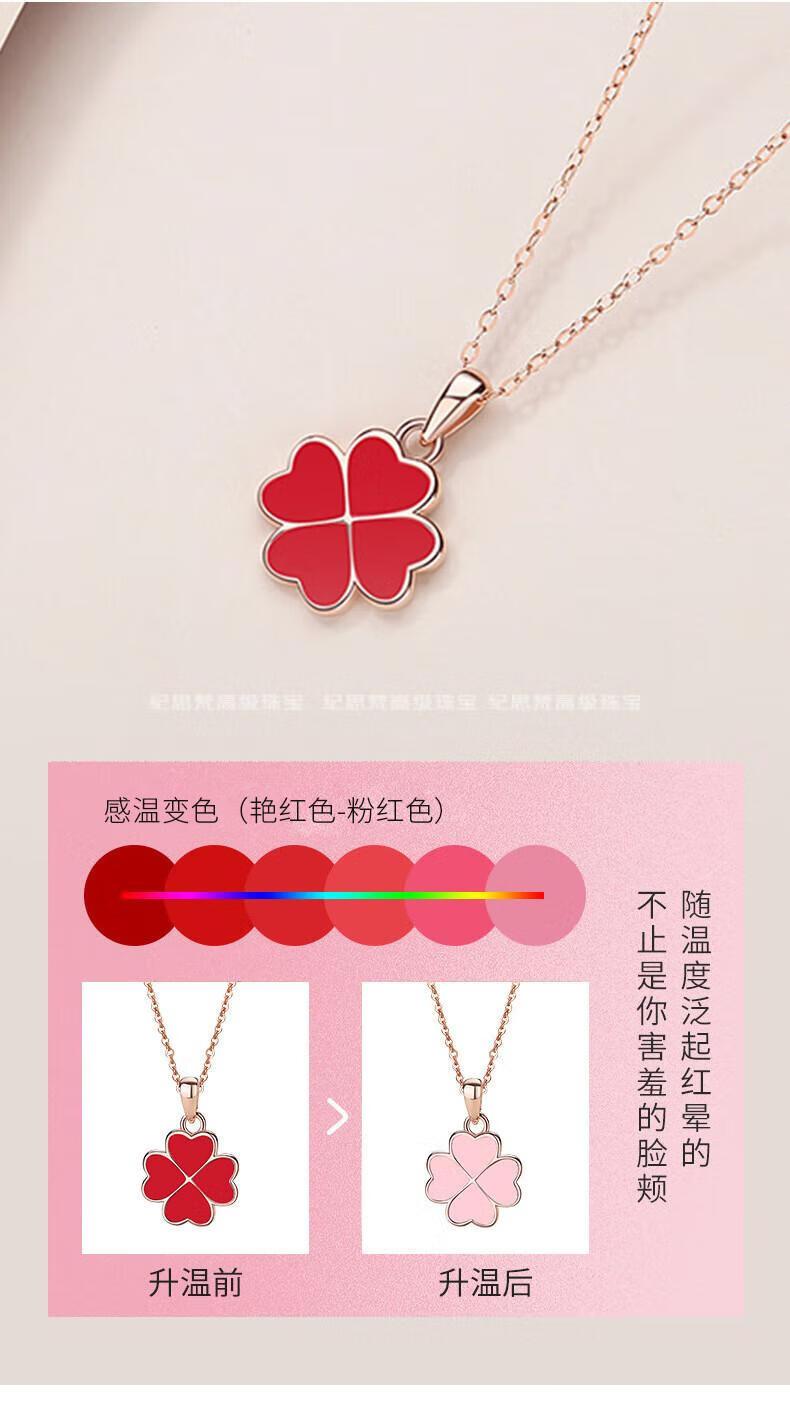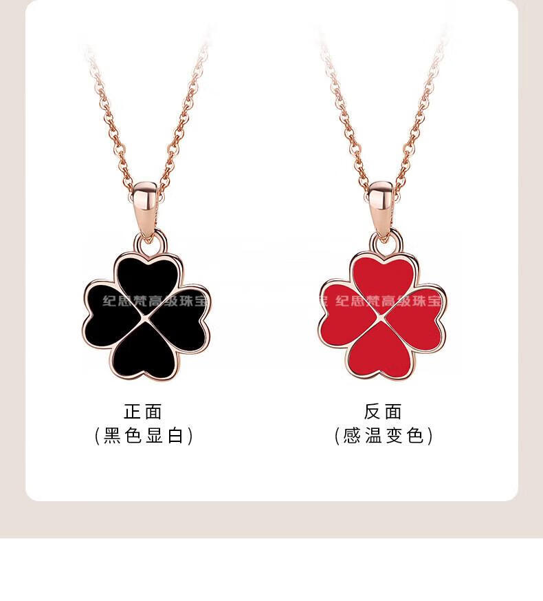 Ji Sifan Light Luxury Warm Color Changing Four-Leaf Clover Necklace Women's Double-Sided Valentine's Day Birthday Gift for Girlfriend Black and Red Double-Sided Necklace Local Warehouse