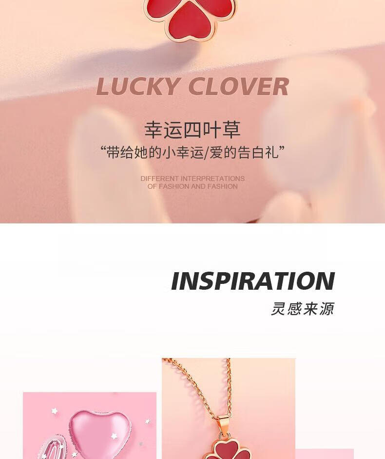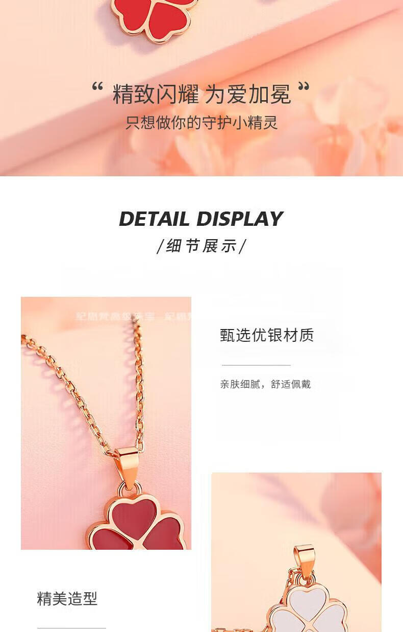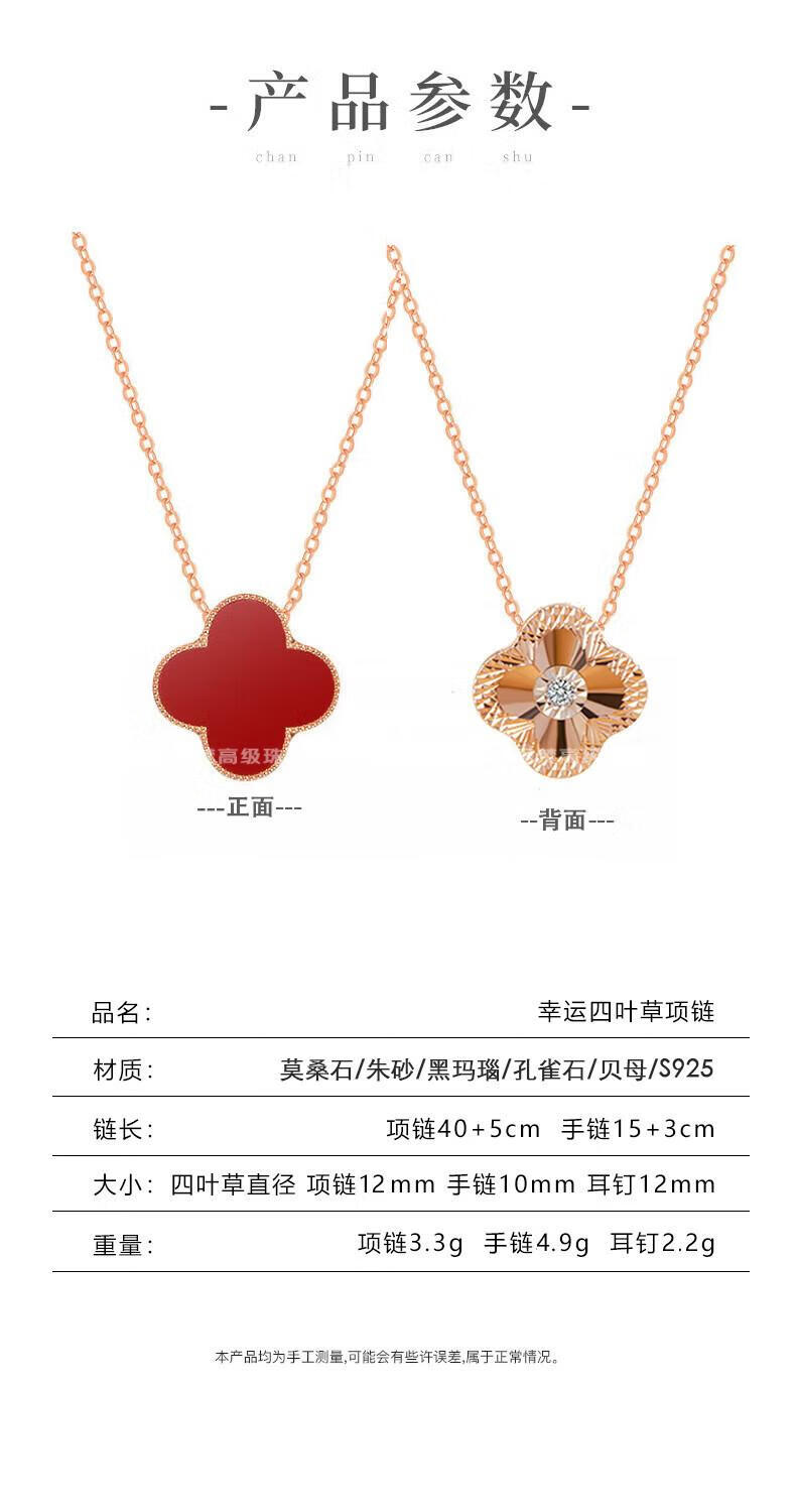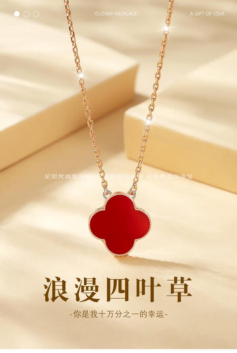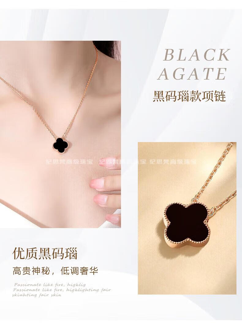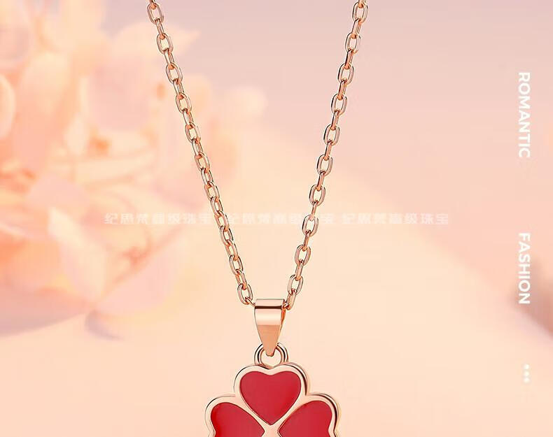 Ji Sifan Light Luxury Warm Color Changing Four-Leaf Clover Necklace Women's Double-Sided Valentine's Day Birthday Gift for Girlfriend Black and Red Double-Sided Necklace Local Warehouse