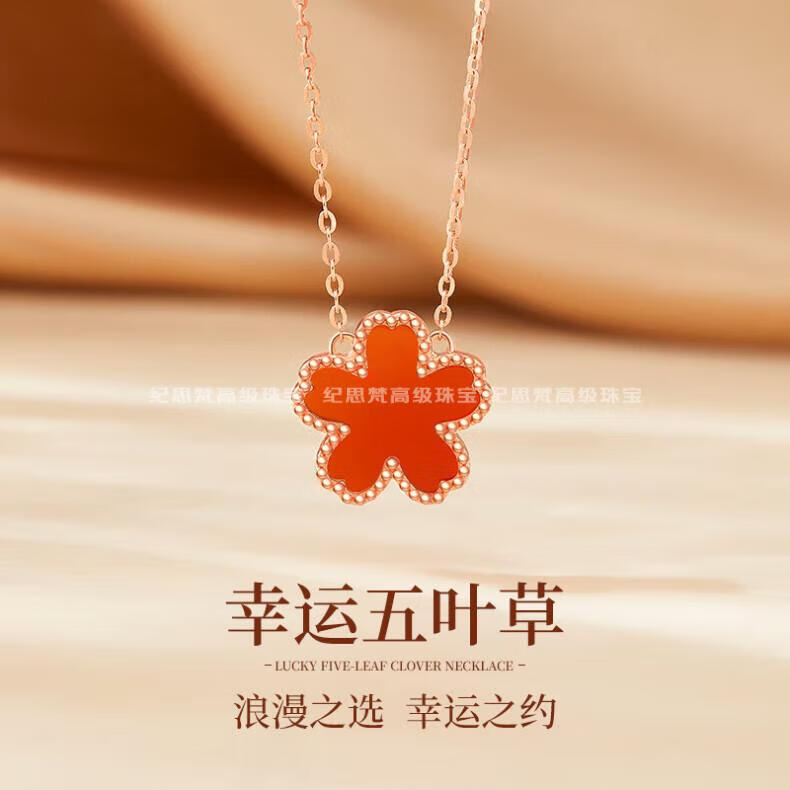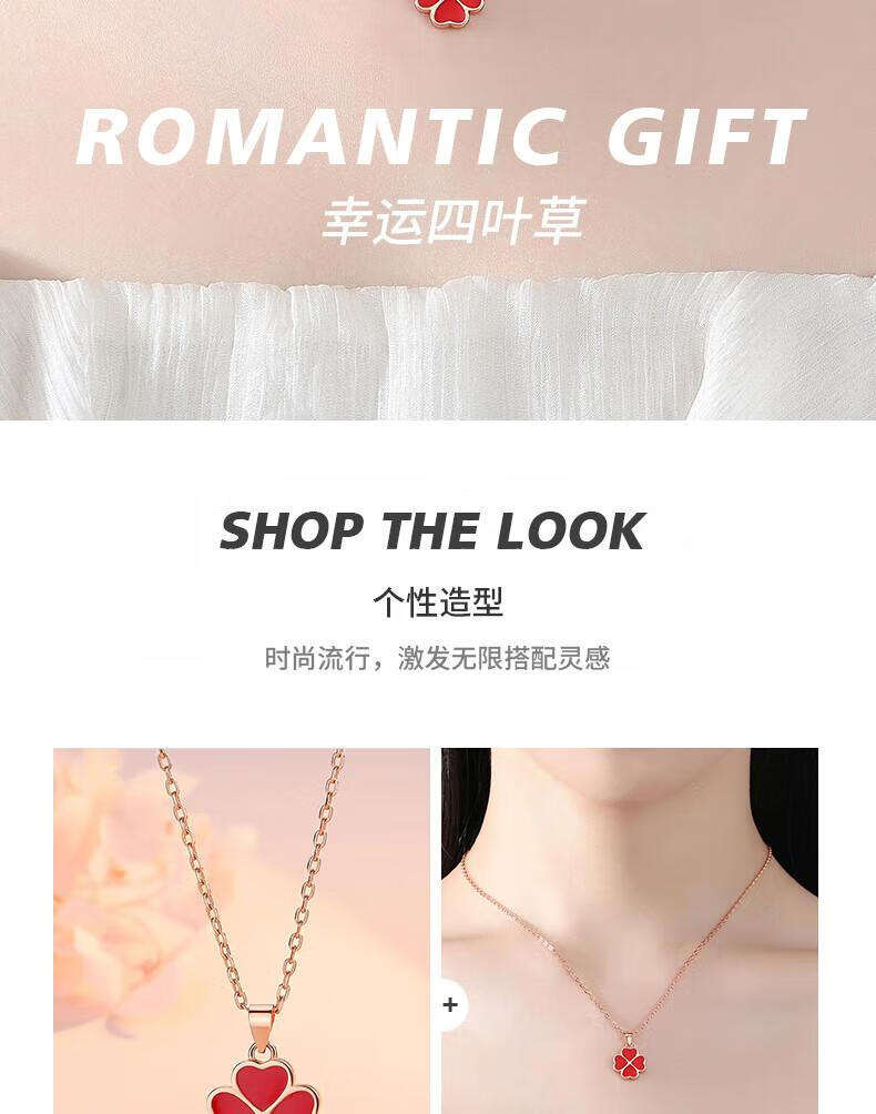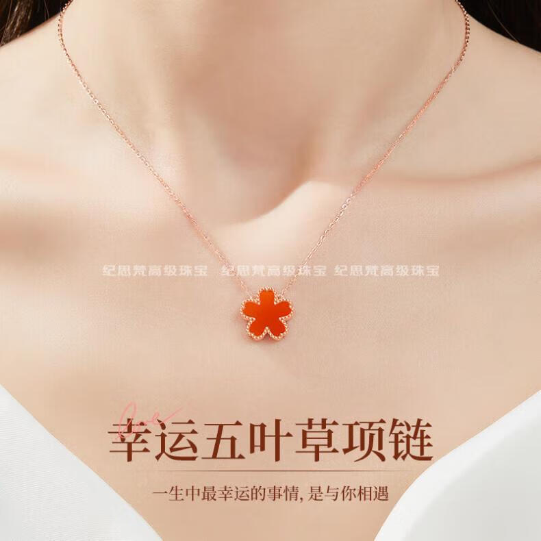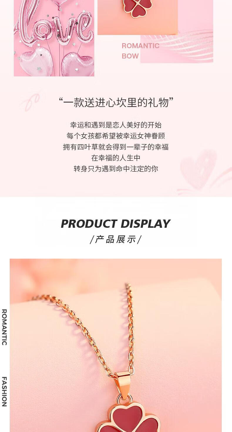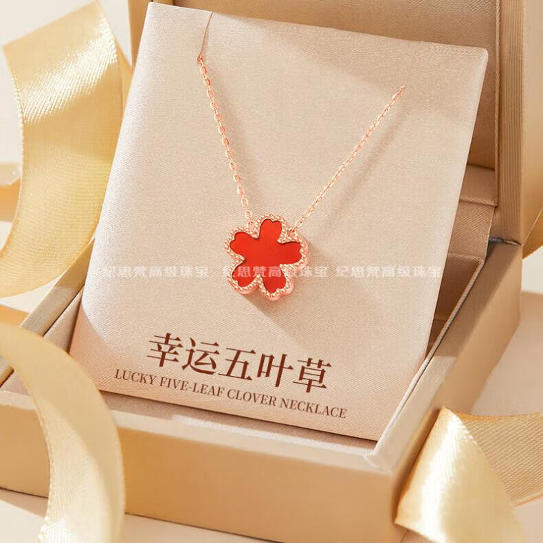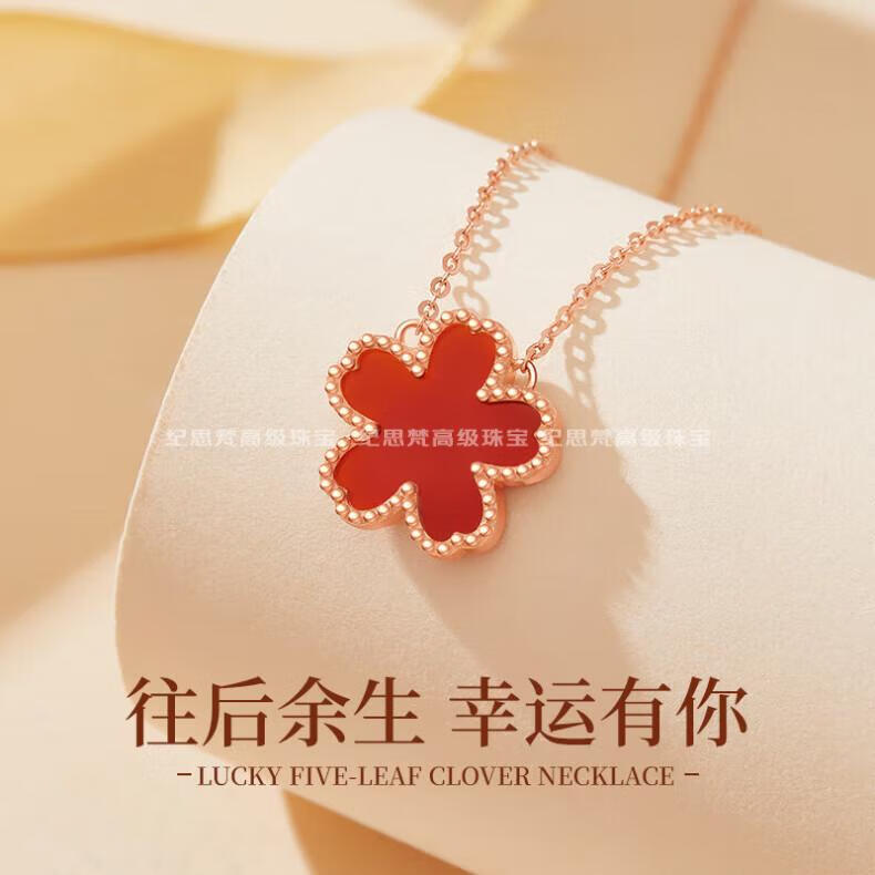 Ji Sifan Light Luxury Warm Color Changing Four-Leaf Clover Necklace Women's Double-Sided Valentine's Day Birthday Gift for Girlfriend Black and Red Double-Sided Necklace Local Warehouse