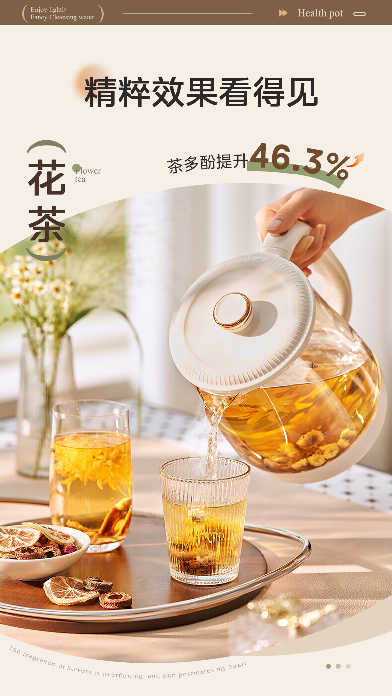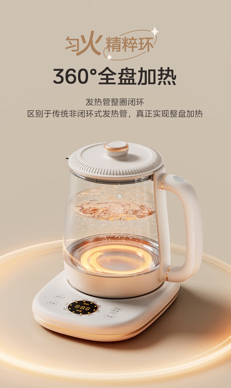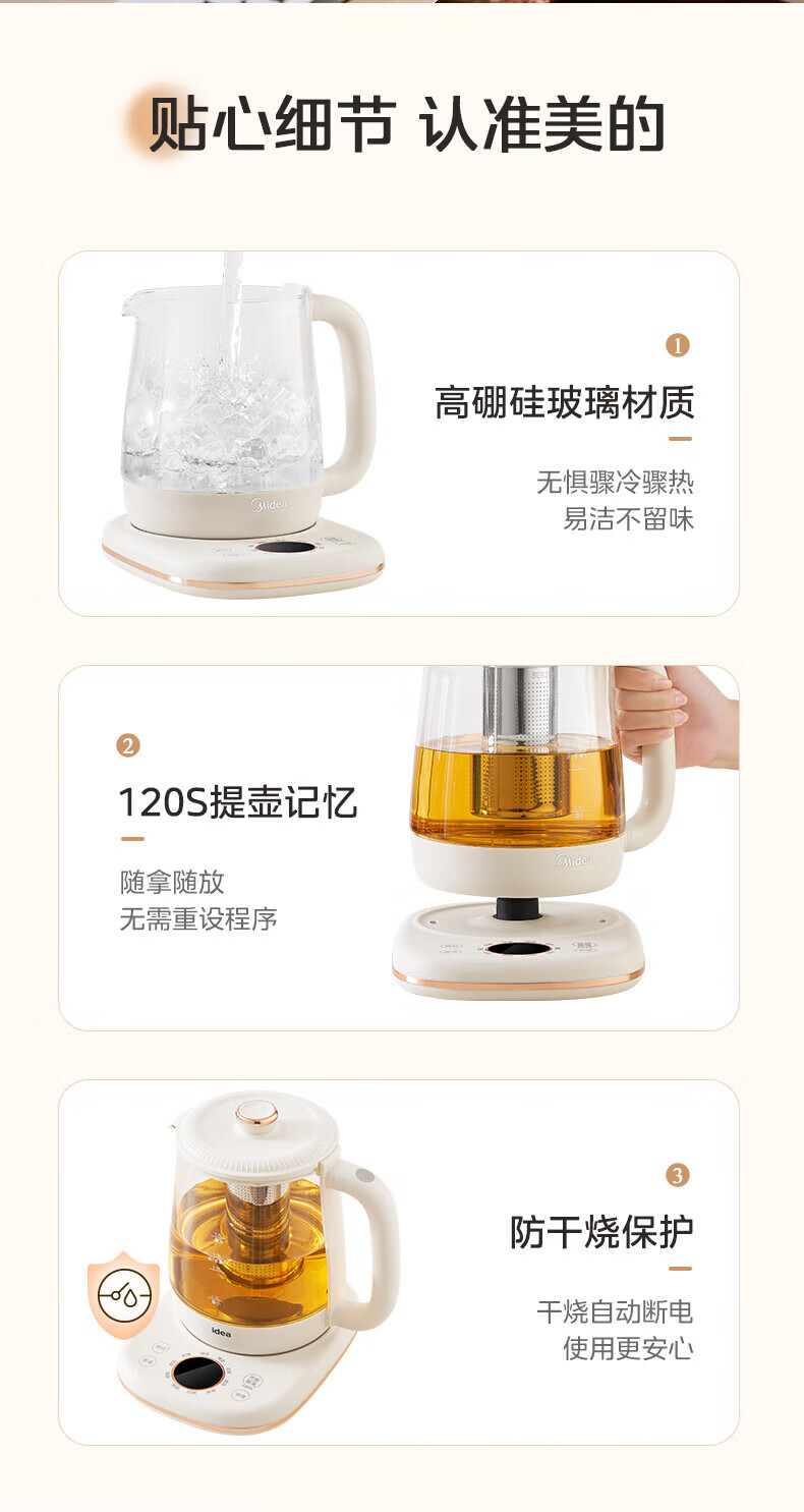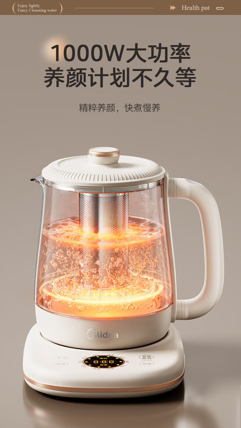 Midea Health Pot Kettle 1.5L Large Capacity Glass Purifying Flower Teapot Home Multifunctional Smart Kettle Office Tea Maker MK-YS15P301 1.5L