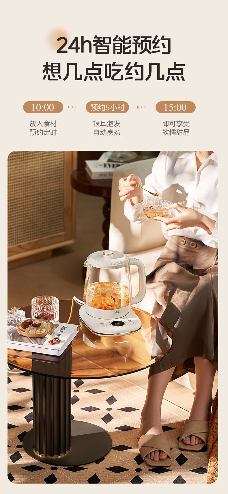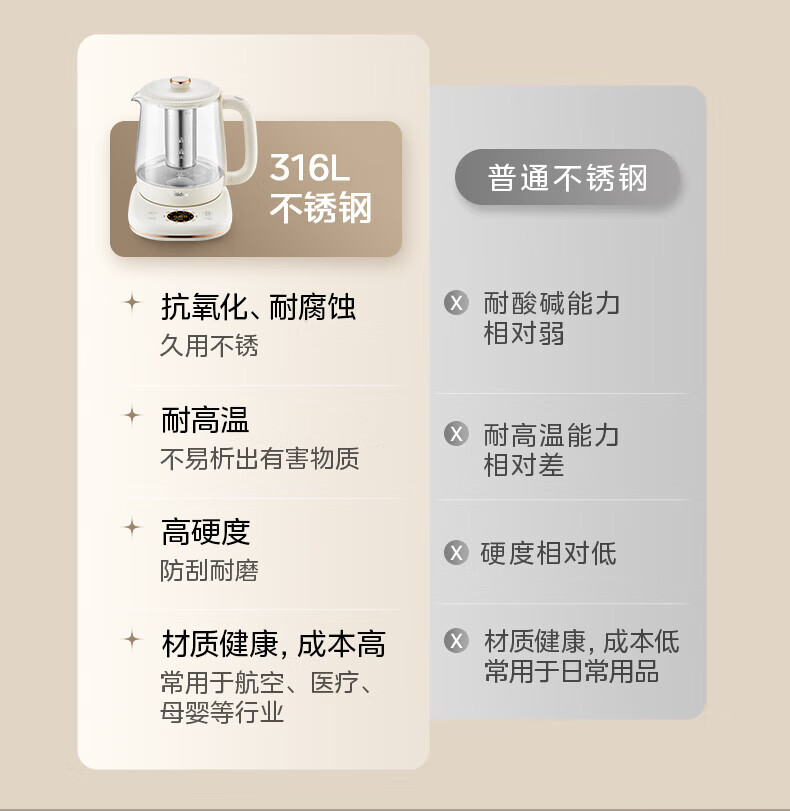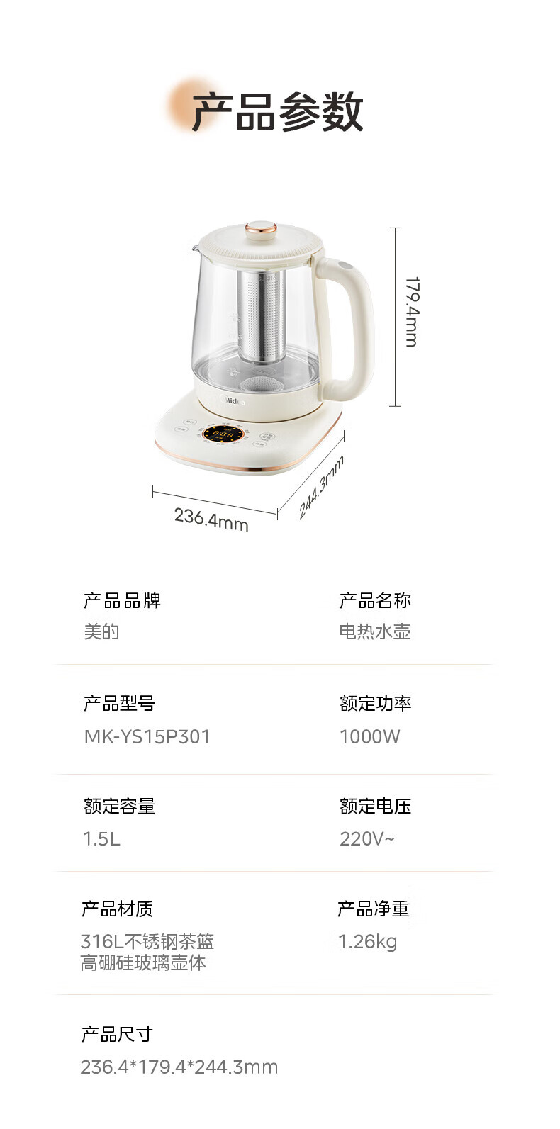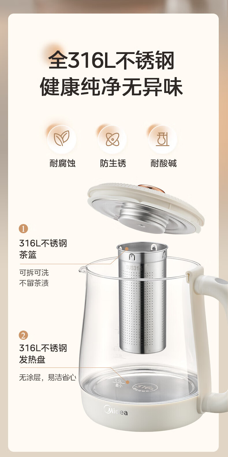 Midea Health Pot Kettle 1.5L Large Capacity Glass Purifying Flower Teapot Home Multifunctional Smart Kettle Office Tea Maker MK-YS15P301 1.5L