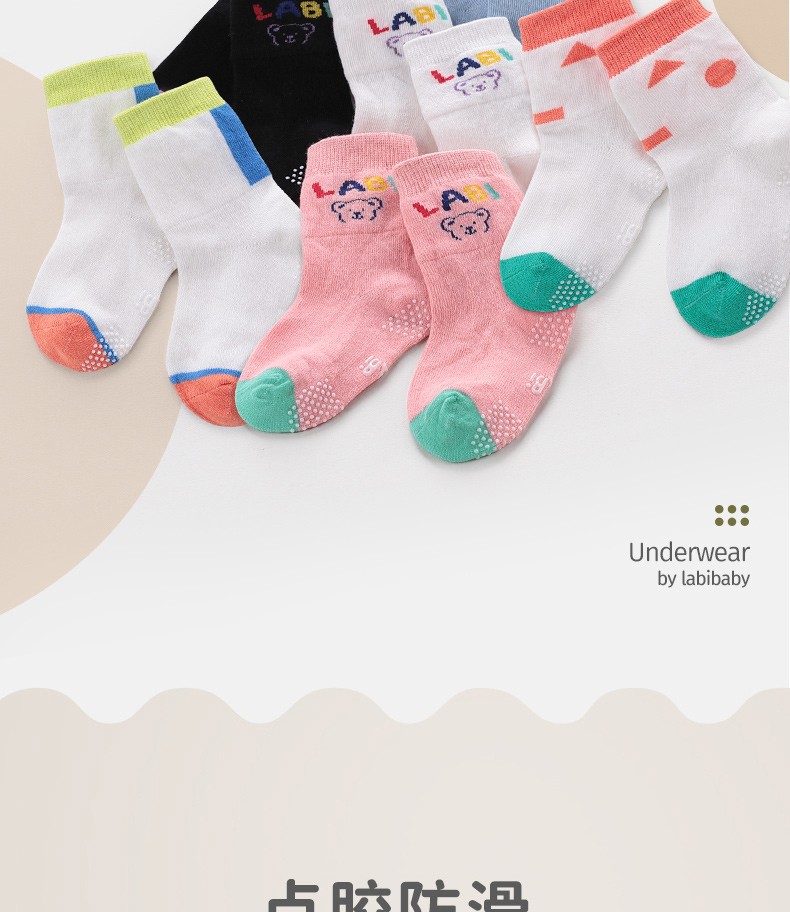 Rabbi children's clothing baby socks spring and autumn style boys and girls socks cute baby non-slip socks floor socks antibacterial geometric socks 3-5 years old (no anti-slip particles)