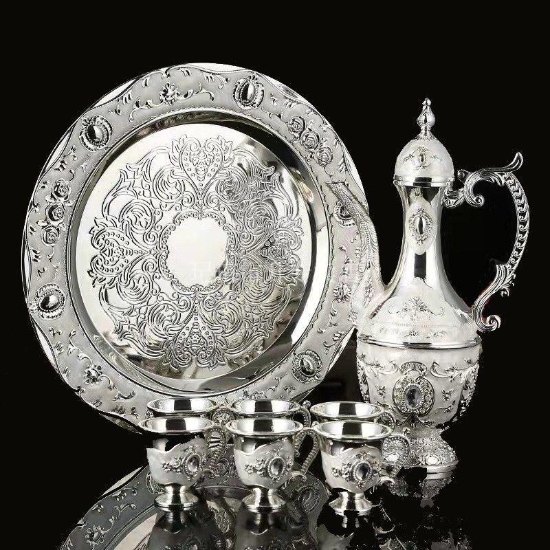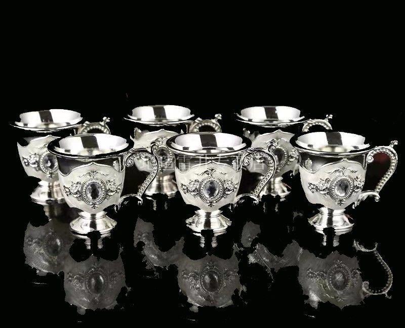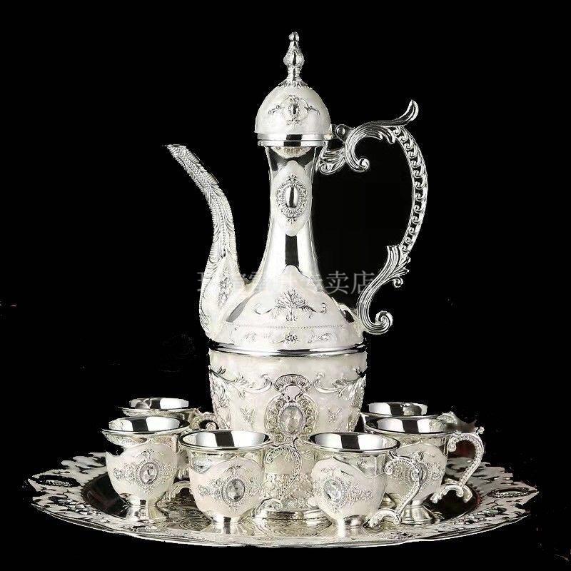 Qixuan waterware and wineware, silver-plated wineware, white wine glasses, eight-piece set, silver flask, small wine glasses, home delivery, silver-plated wineware, eight-piece set