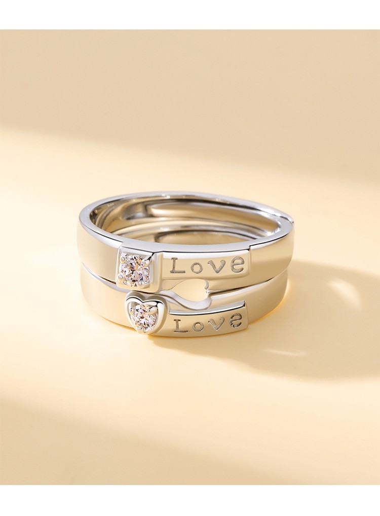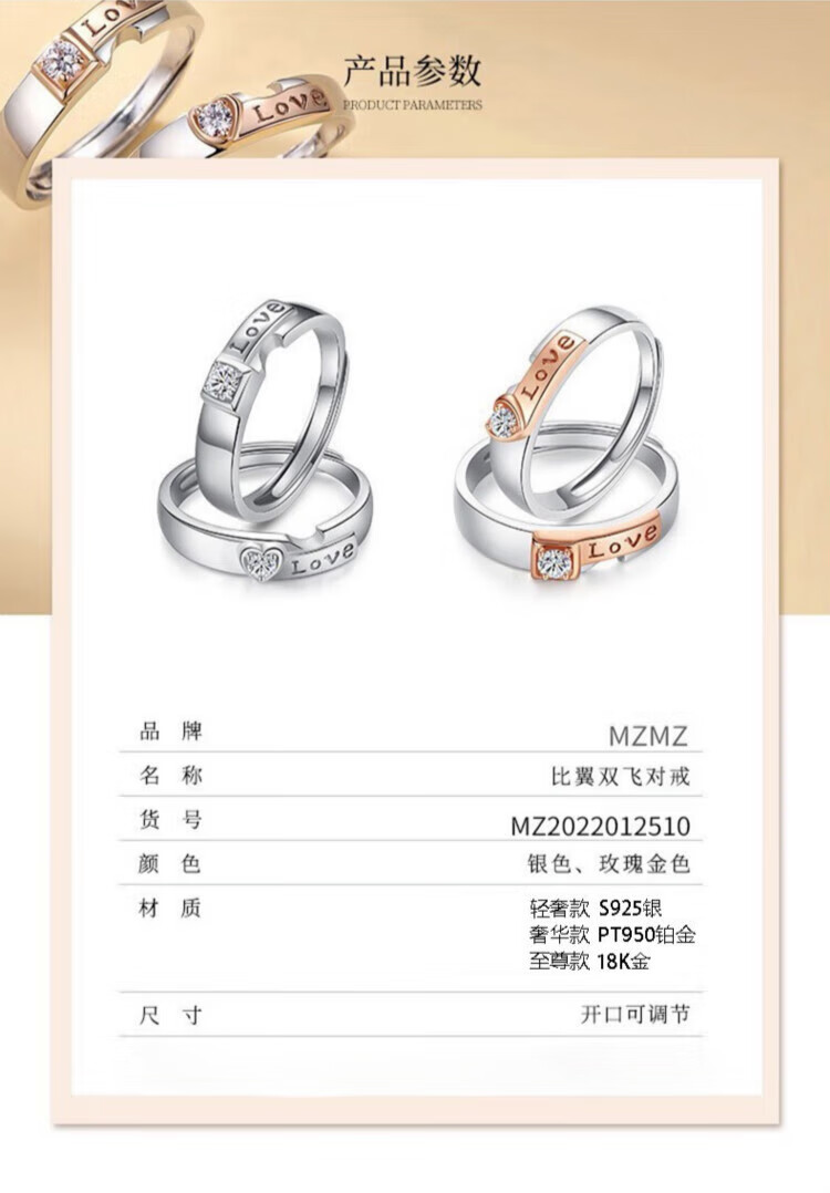 MZMZ platinum couple ring for men and women, platinum wedding, engagement, confession, birthday and anniversary gift for girlfriend, light luxury model - Biyi Shuangfei double ring, silver