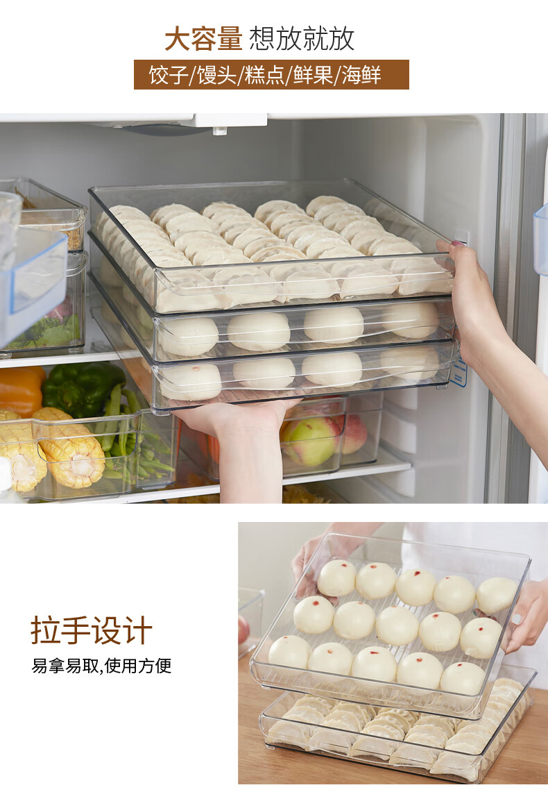 Refrigerator dumpling storage box Refrigerator storage box frozen dumpling box for eggs Drawer-type food-grade vegetable chaos sorting box with lid Square style 30*20*10cm